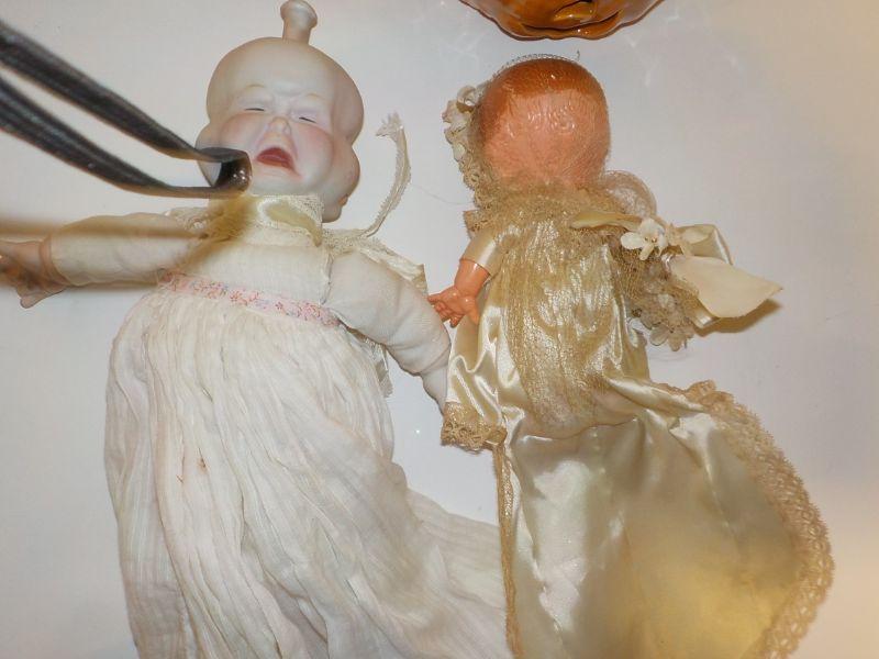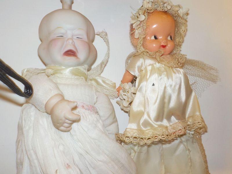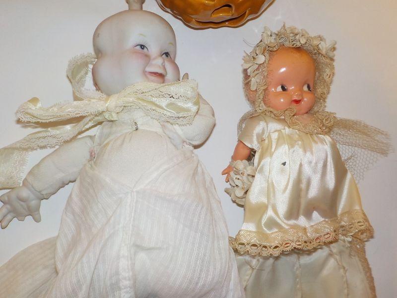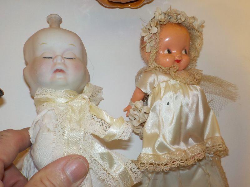 2- vINTAGE - 3 sided face doll vintage and 1900's bisque baby doll.