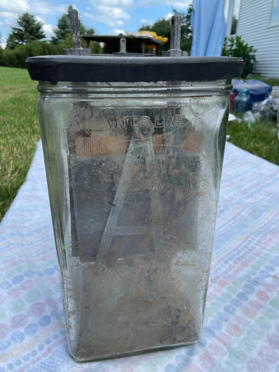 2 vintage wet cell batteries, 1 intact & 1 opened and empty