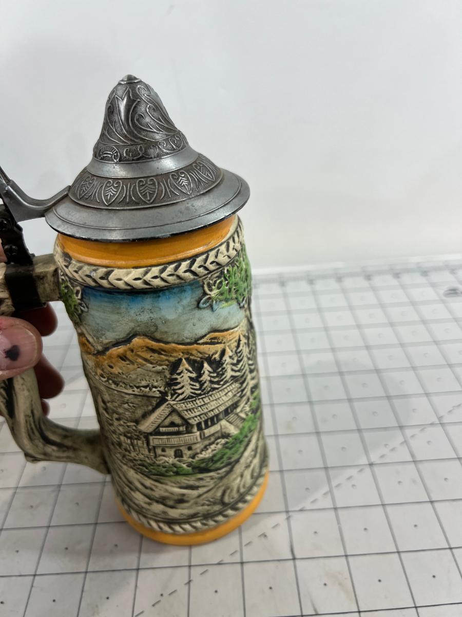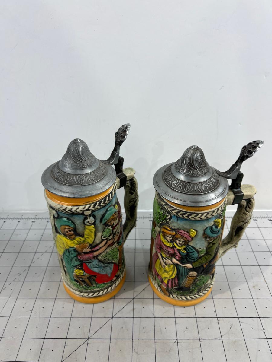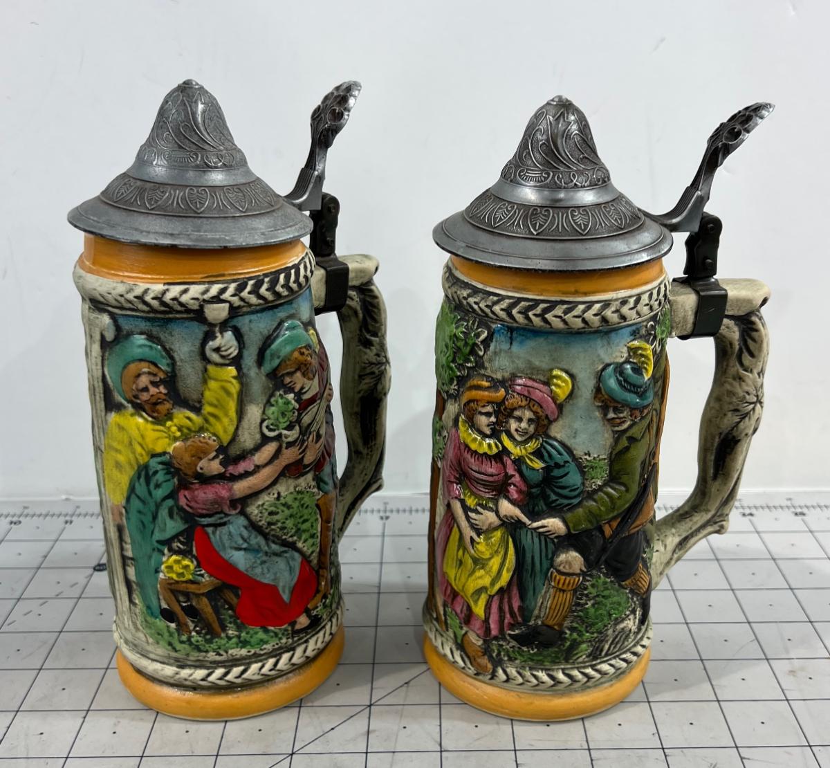2 Vintage Beer Steins, Ceramic with Pewter Lids