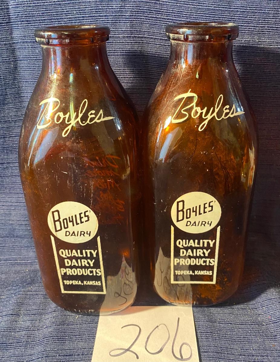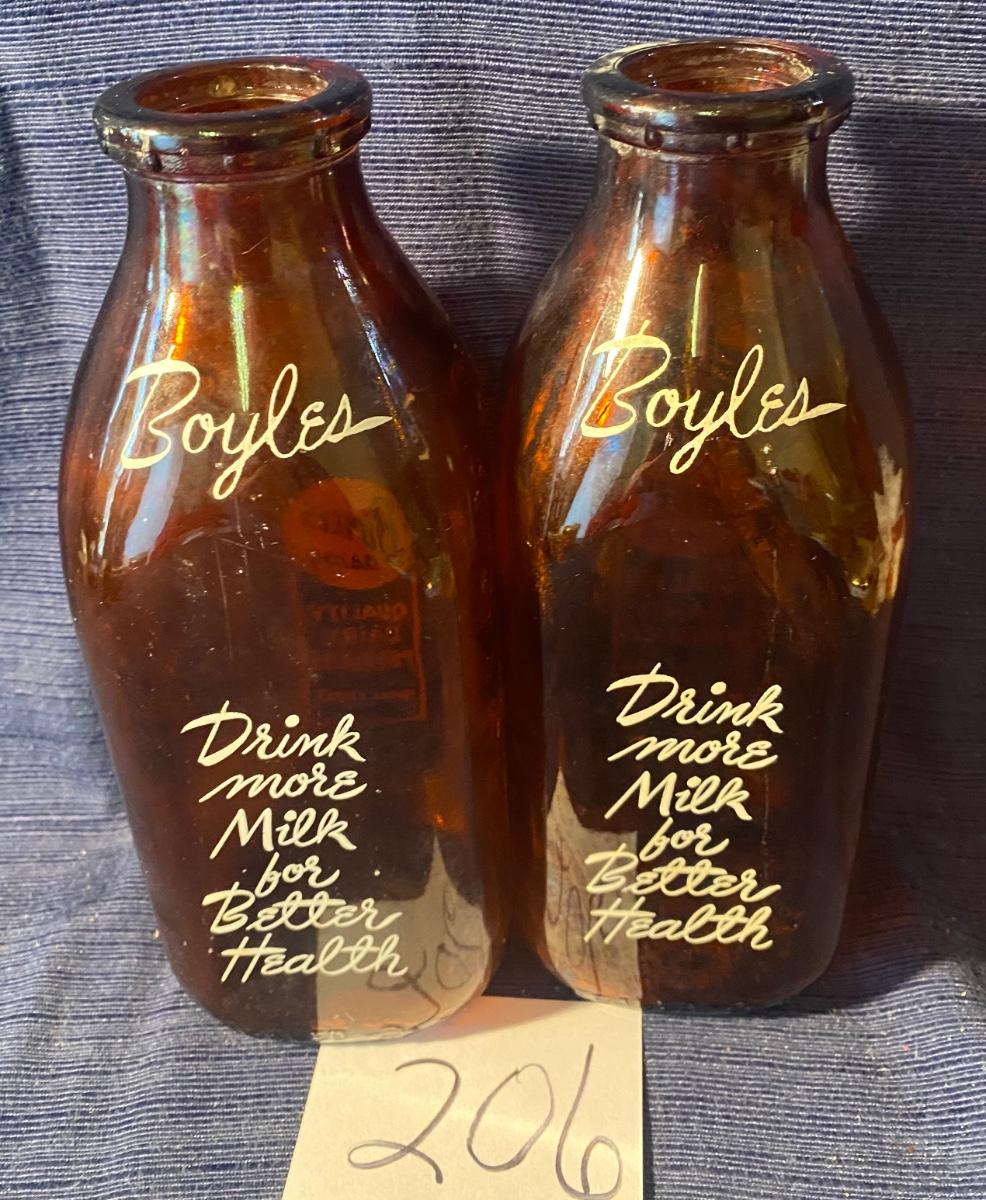 2 Vintage Boyles Dairy 1950s Milk Bottles