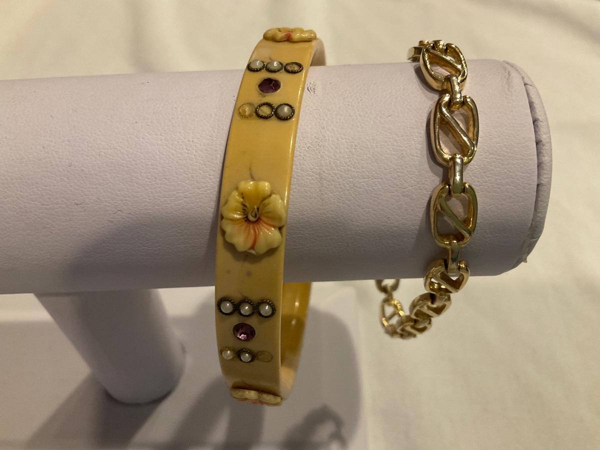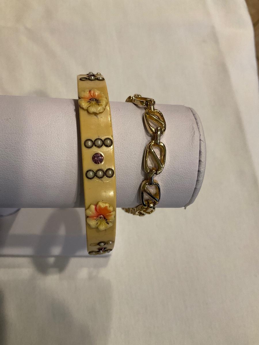 Yellow bracelet has more of a plastic feel and is missing some beads