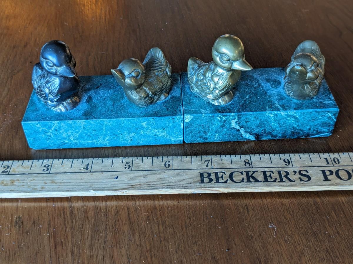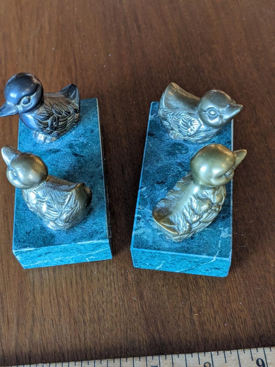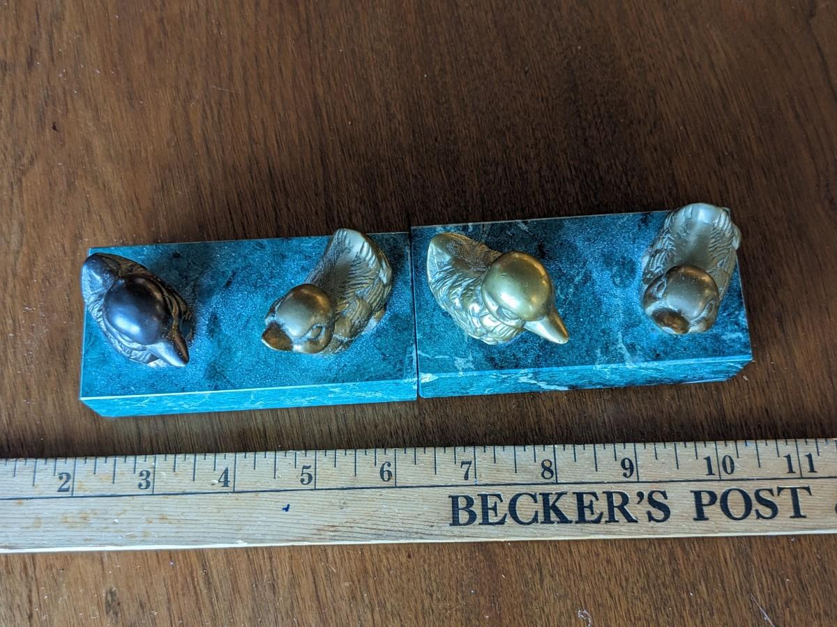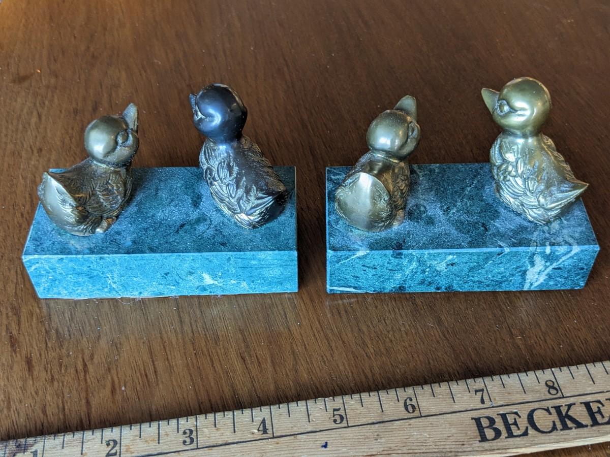 2 Vintage Brass Ducks On Marble Block. Paperweight