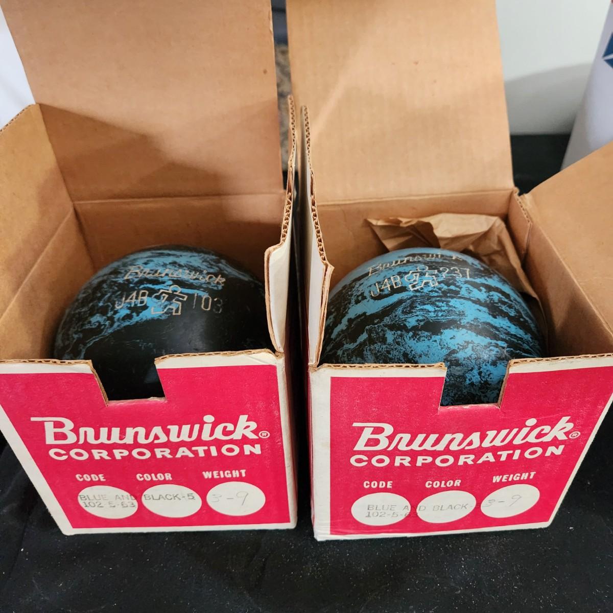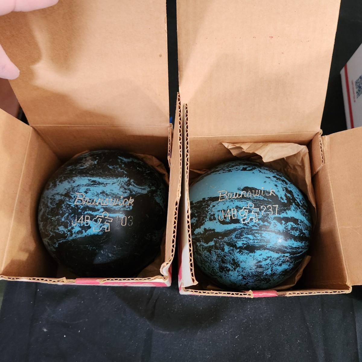 2 Vintage Brunswick Duckpin Bowling Balls w Box