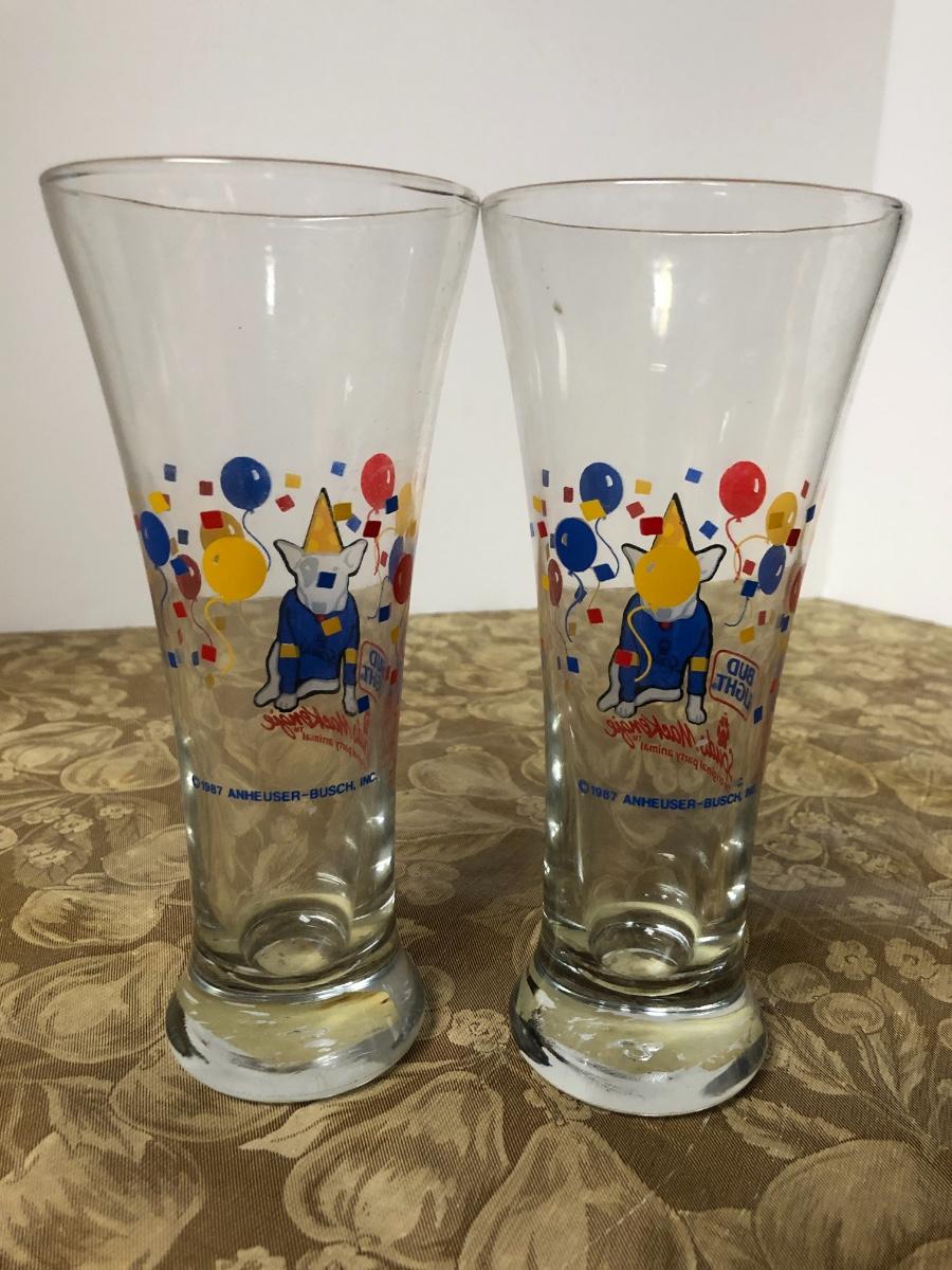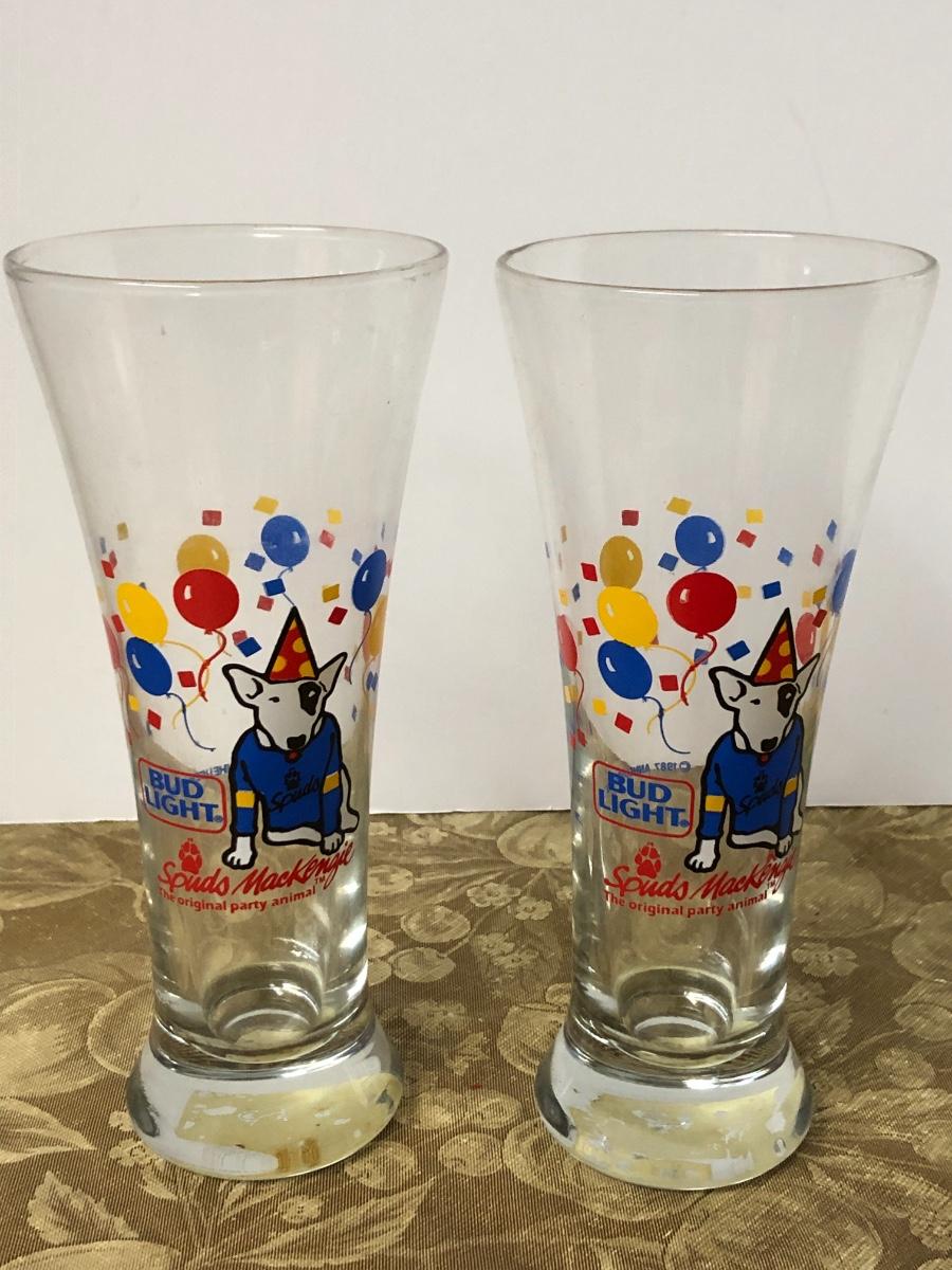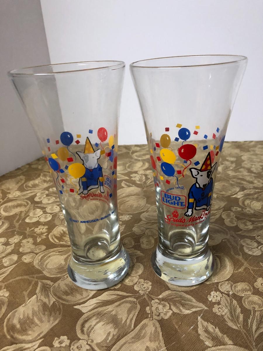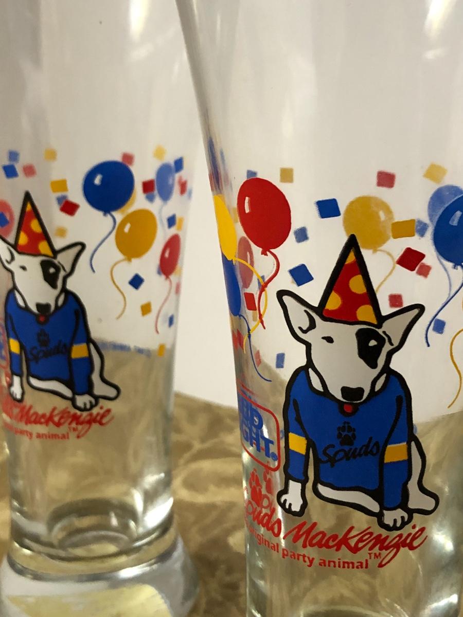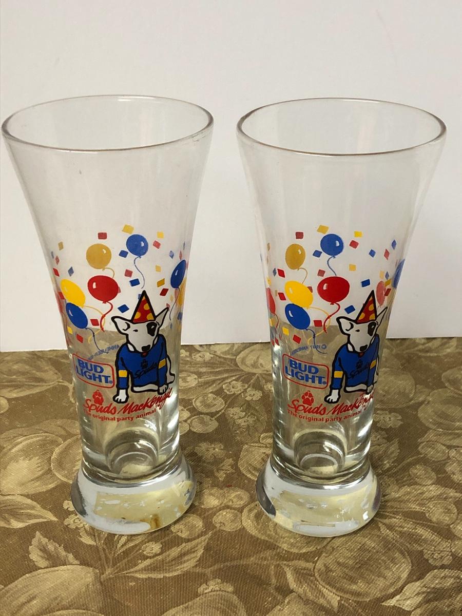 2 Vintage Bud Light Spuds Mackenzie Anheuser Busch Beer Glasses