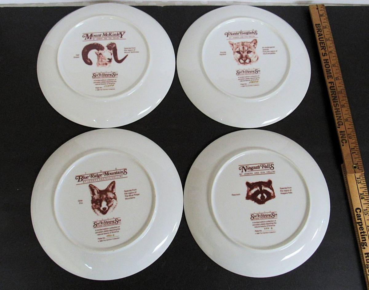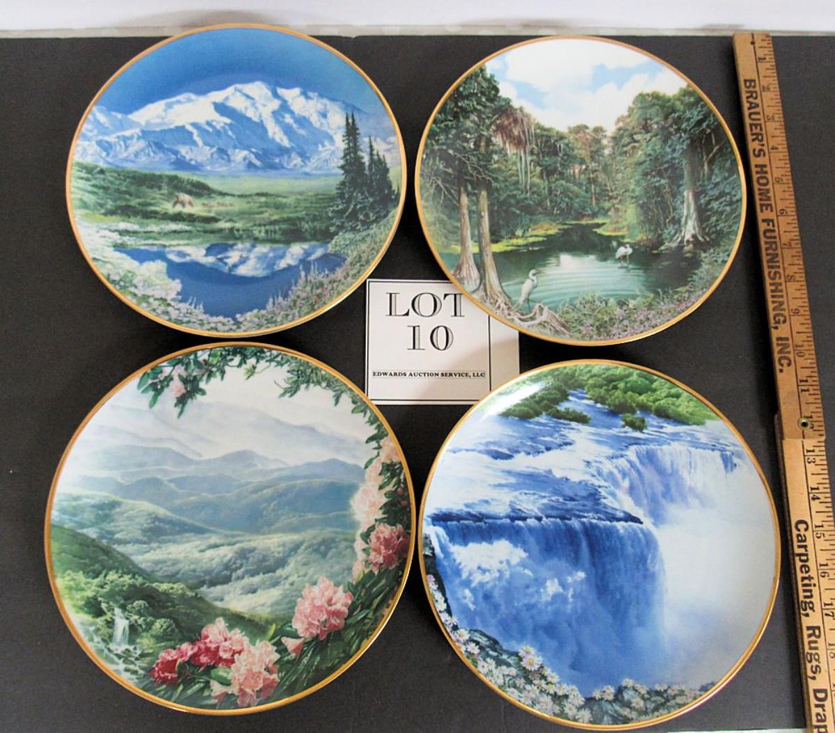 4 Sea To Shining Sea Plates, 1988, Florida Everglades #0764A, Mt McKinley #0025A, Niagra Falls # 0114A, Blue Ridge Mts # 0621A