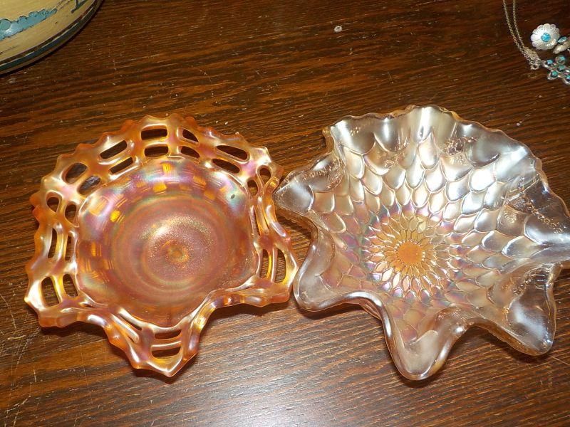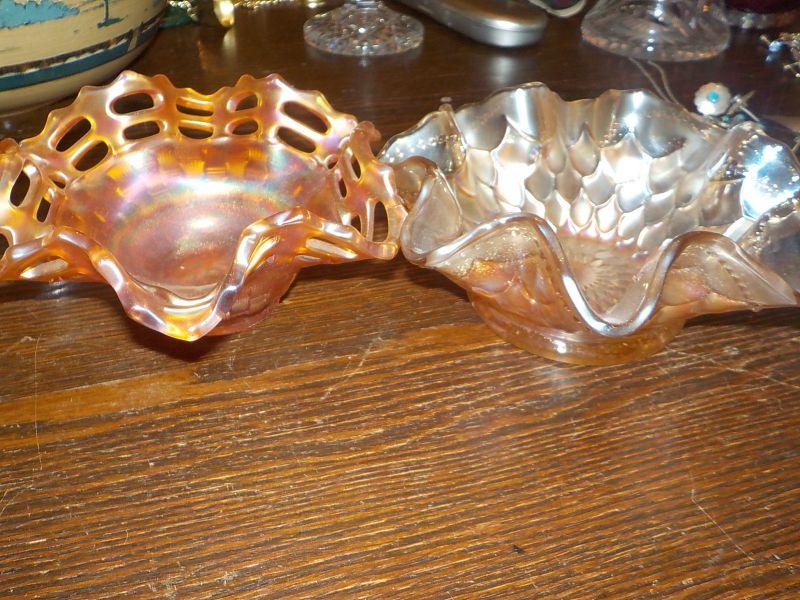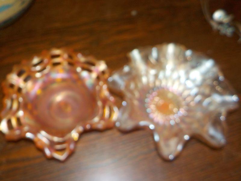 2 Vintage Carnival Glass Shell shape Candy dishes.