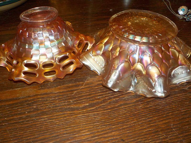 approx. 5.5 round, no chips , vintage Carnival Glass.