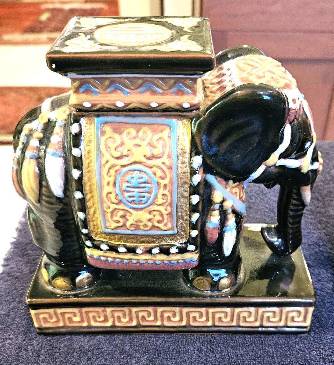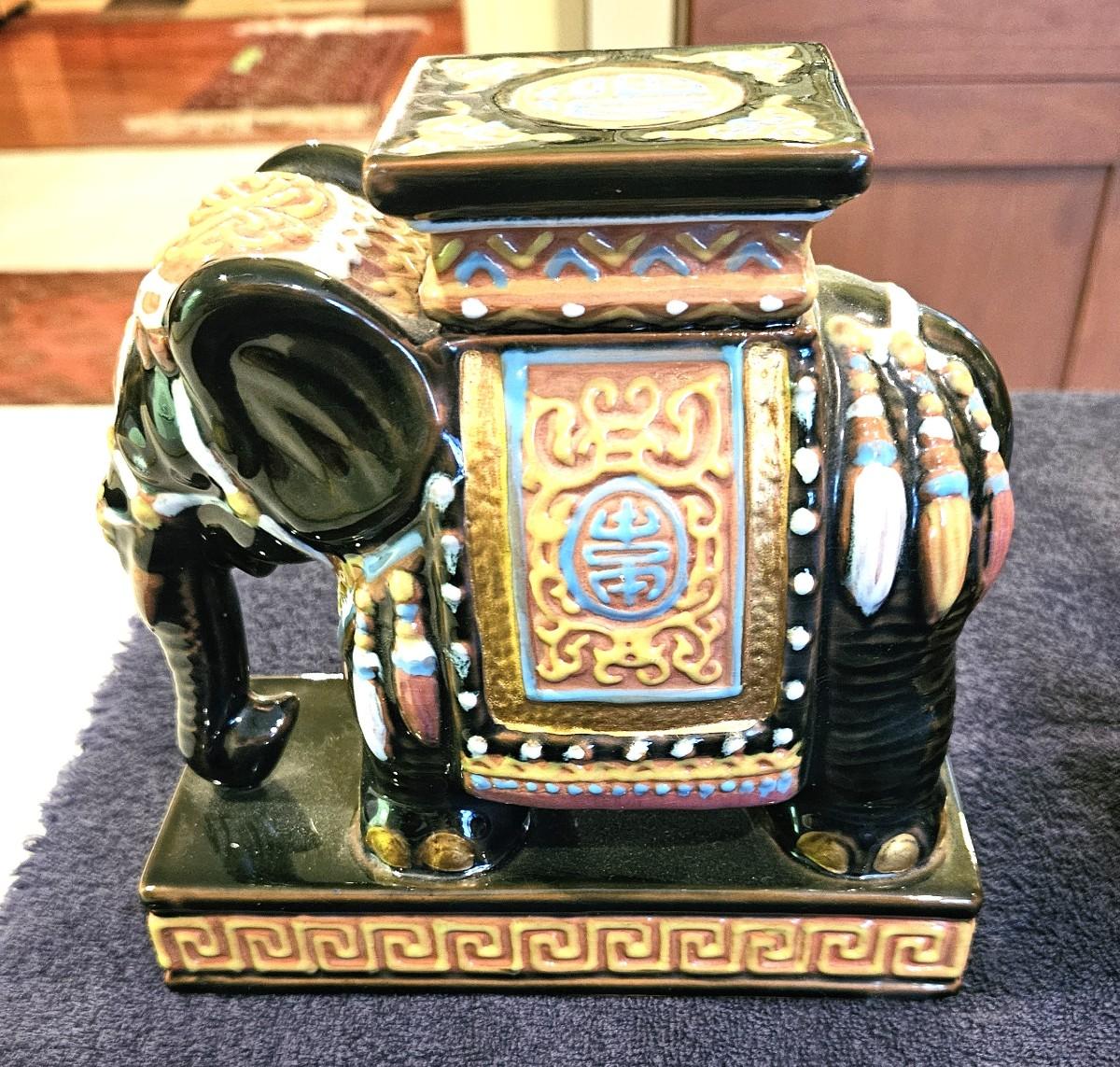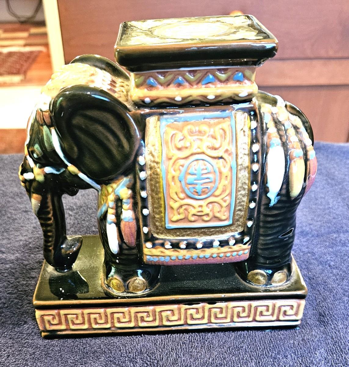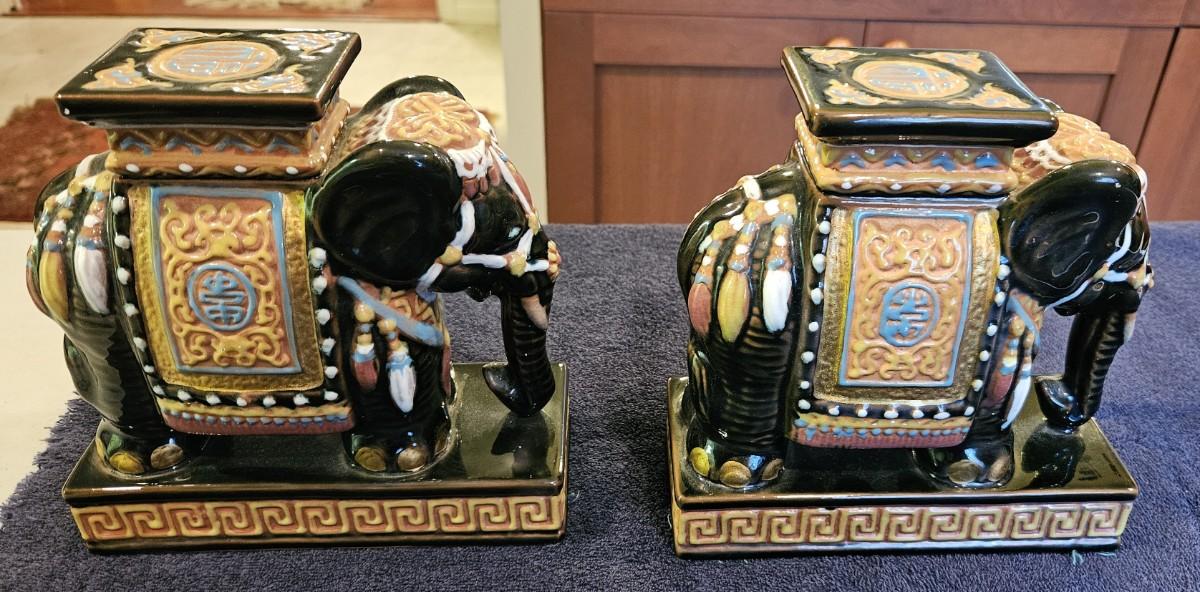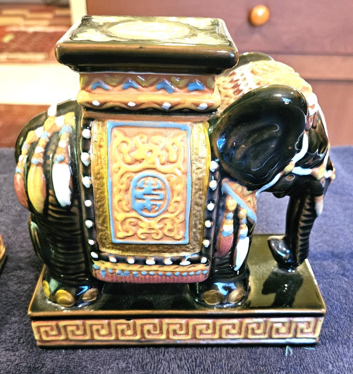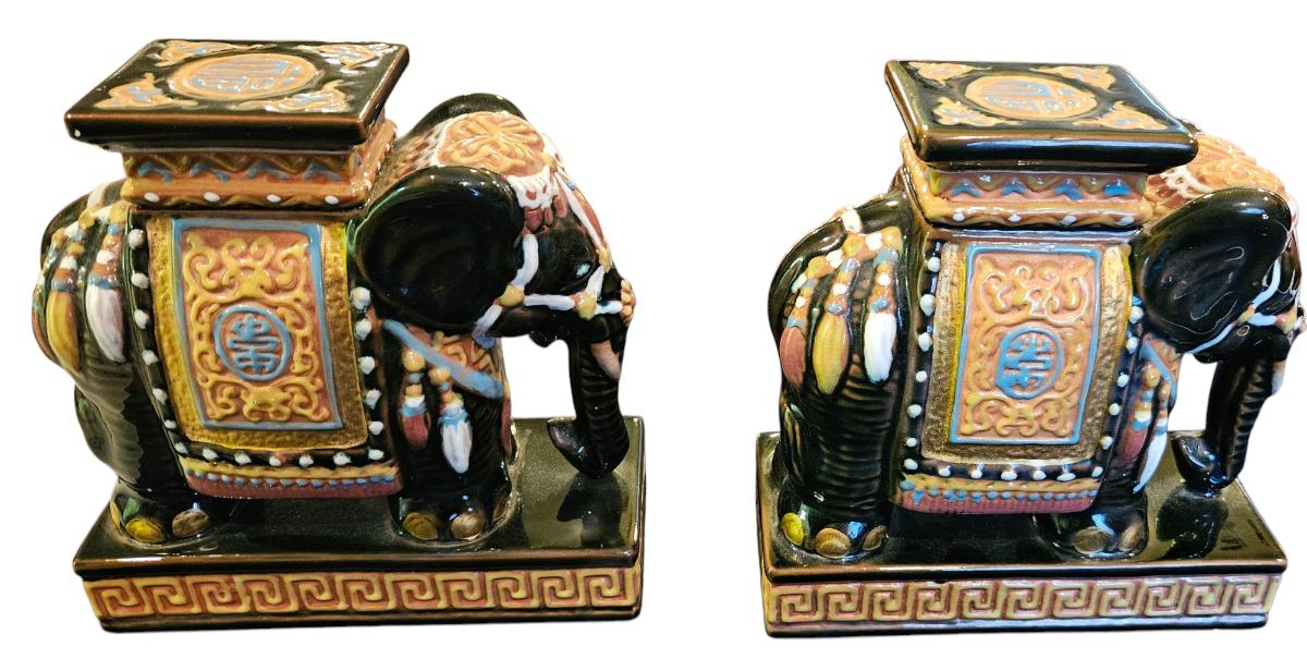 2 Vintage Chinese Ceramic Elephant Stand/Stool, Hollywood Regency Style