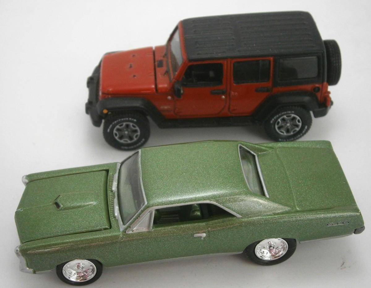2 Vintage Die Cast Automobiles1998 JOHNNY LIGHTNING - MUSCLE CARS U.S.A. - 1967 PONTIAC GTO - 1/64 DIECAST + another diecast cast vehicle.
