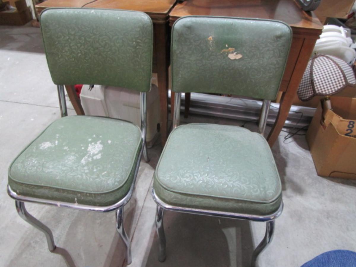 2 vintage dining room upholstered metal chairs