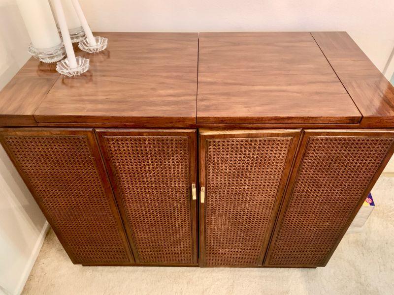 Fold out top. Server/buffet combo by Drexel. Laminate top & flatware drawer. Vintage 1970s