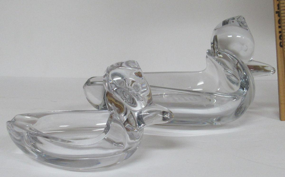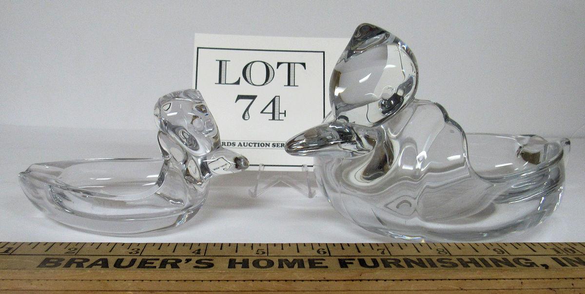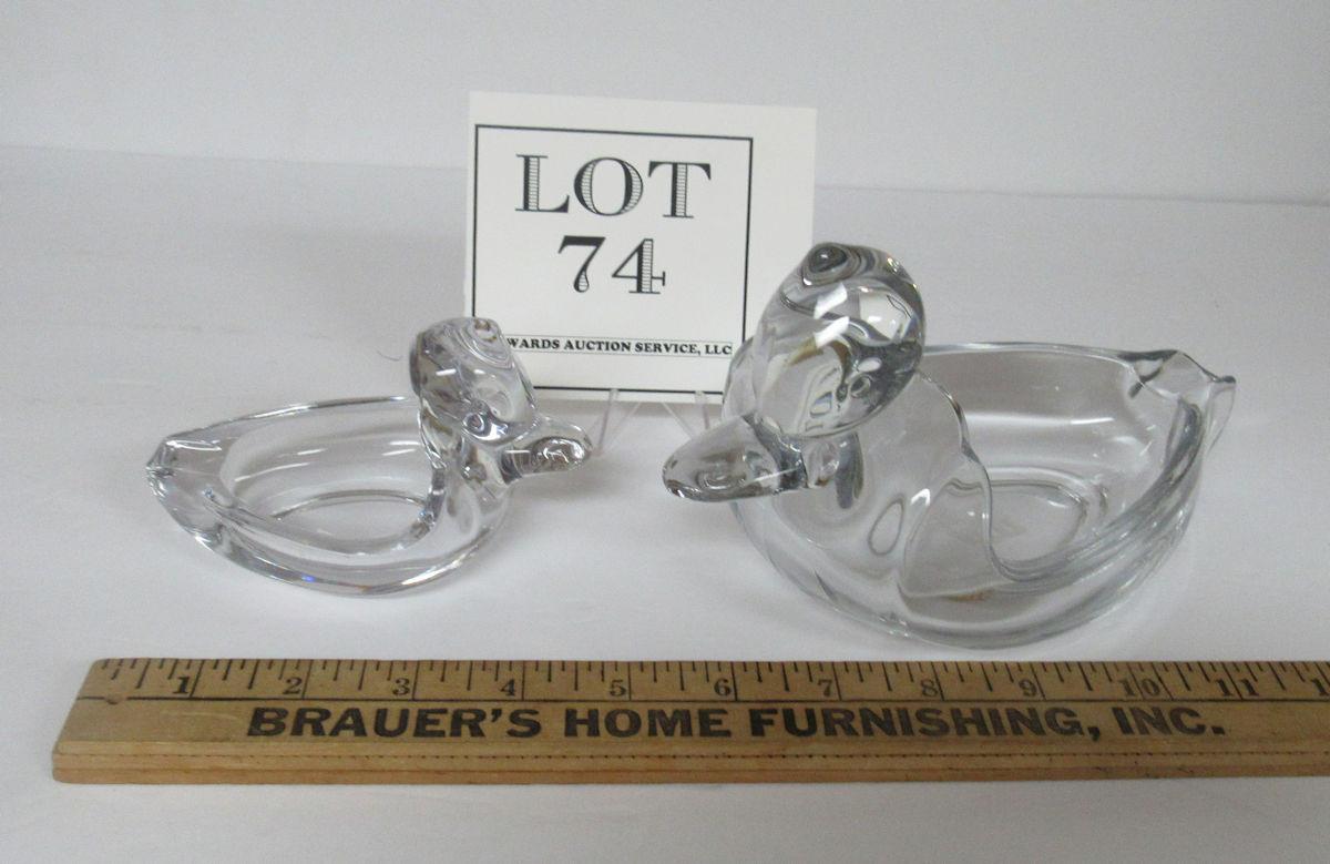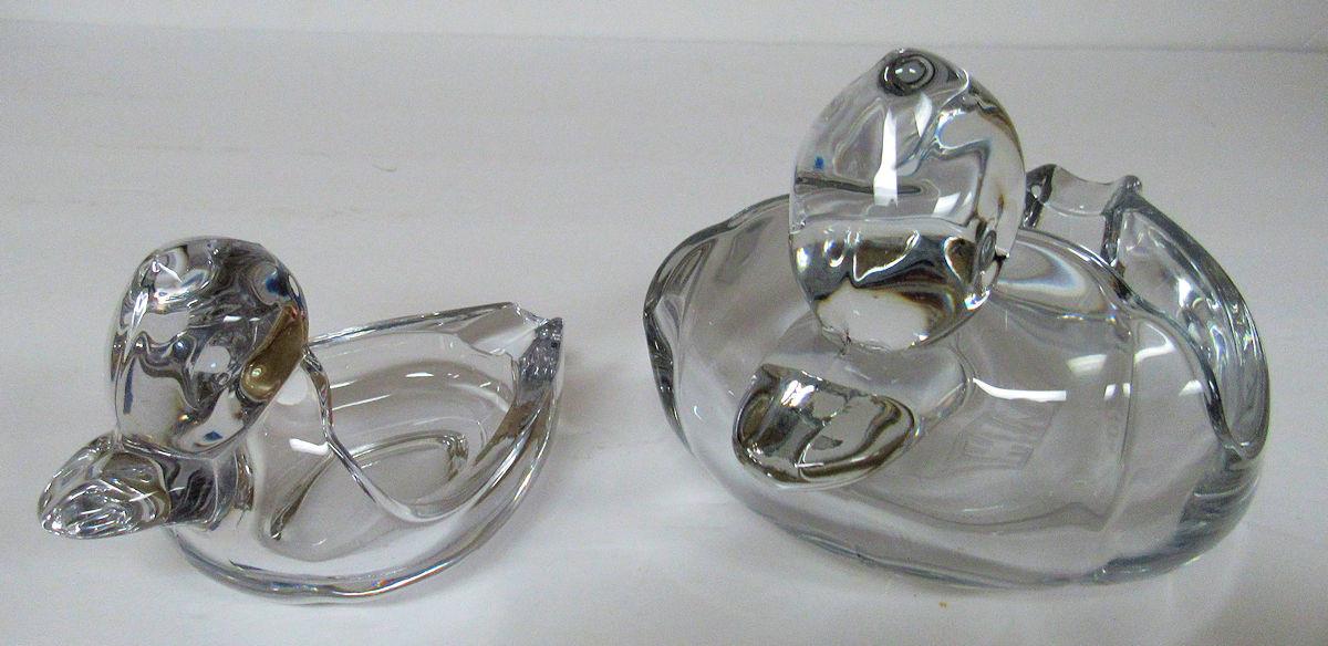 2 Vintage Duncan Miller Glass Duck Ashtrays