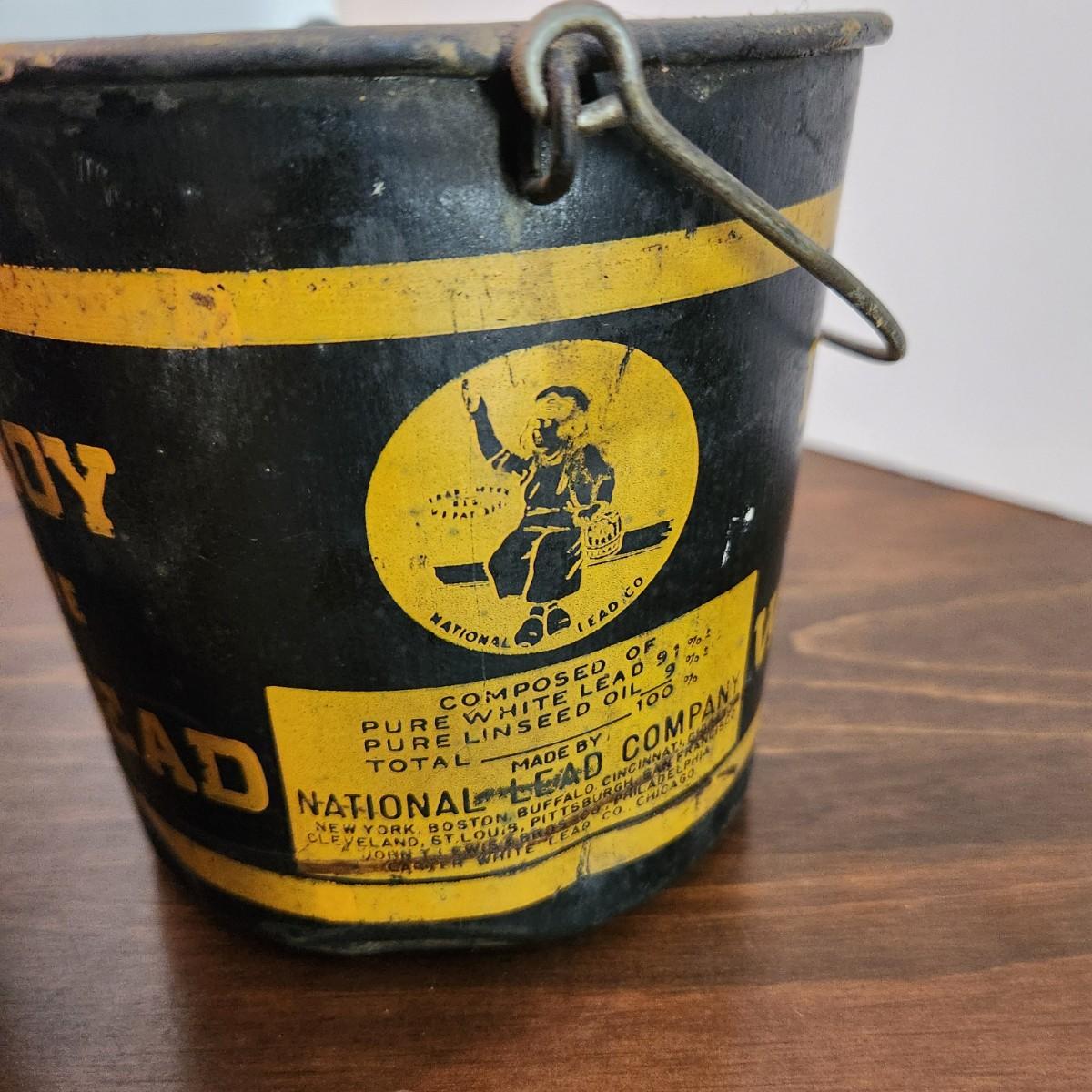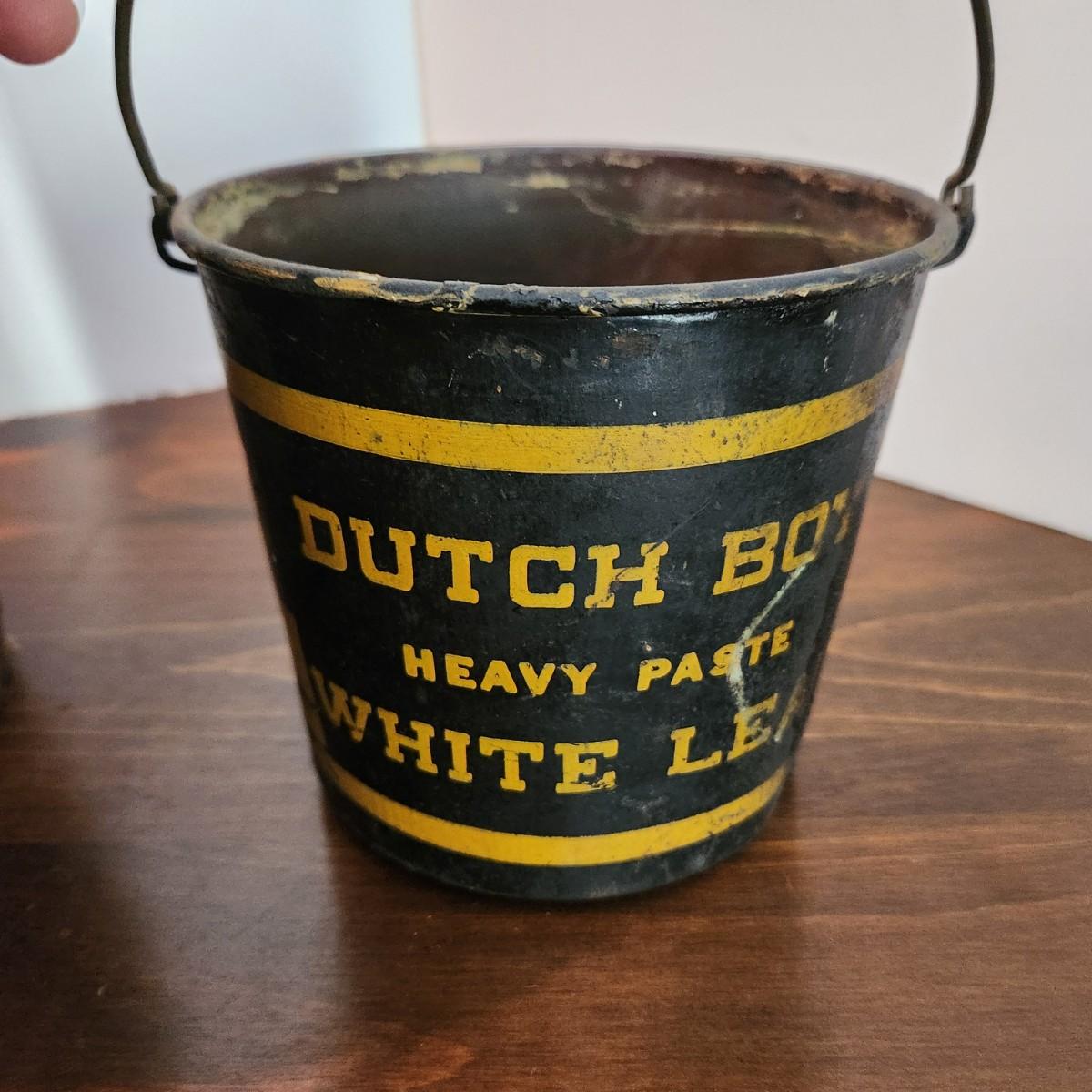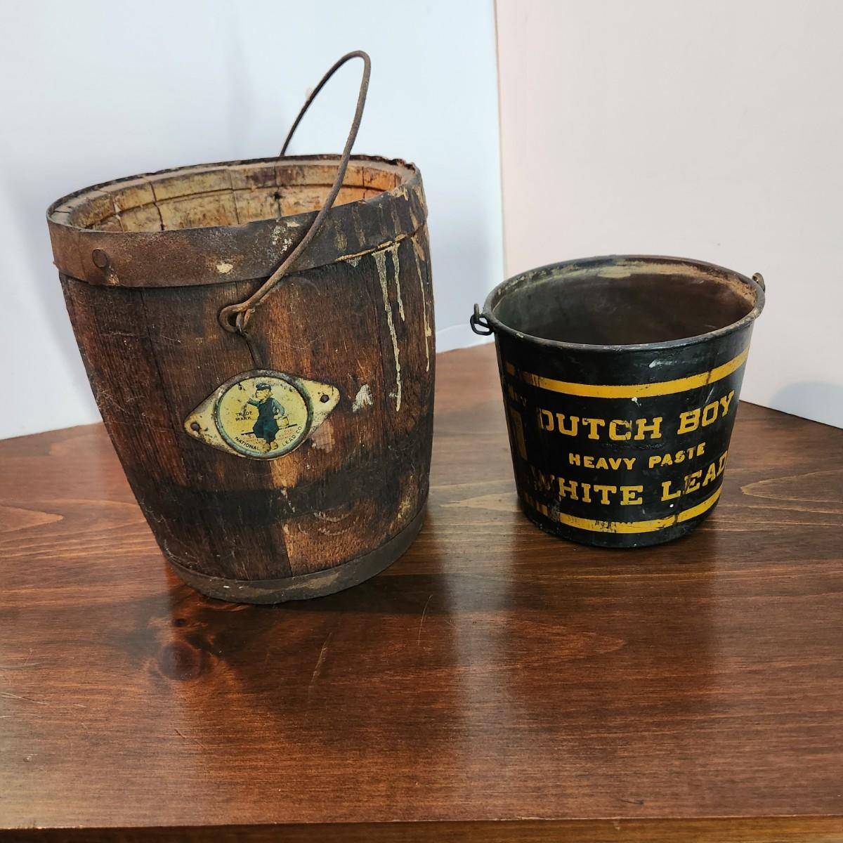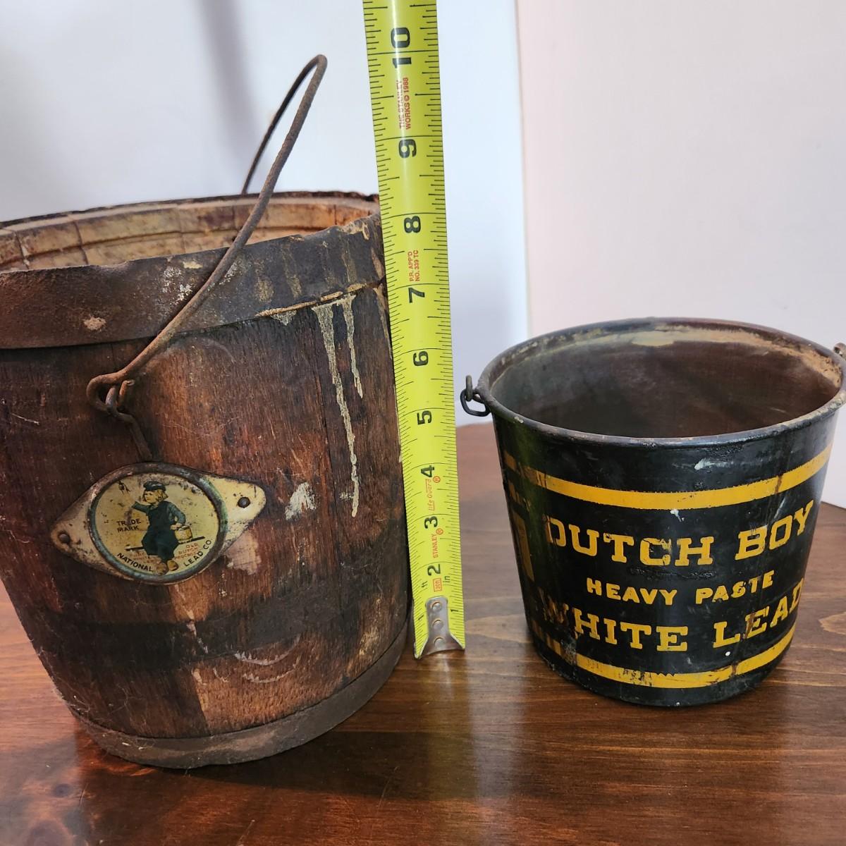 2 Vintage Dutch Boy Paint National Lead Co. Pails 1 Wood 1 Metal