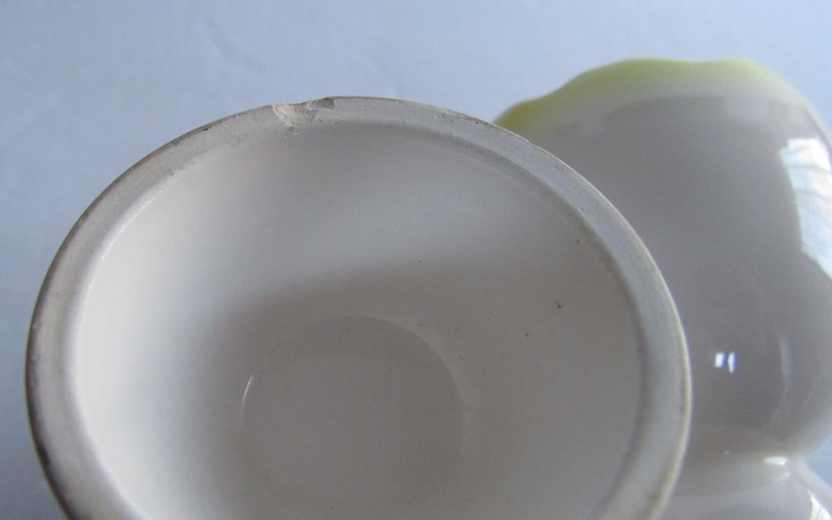 One has a chip on bottom, the yellow one has nicks on the top as seen in photos. Shipping is available at shipping cost plus $5 a box handling fee. See our terms for details.