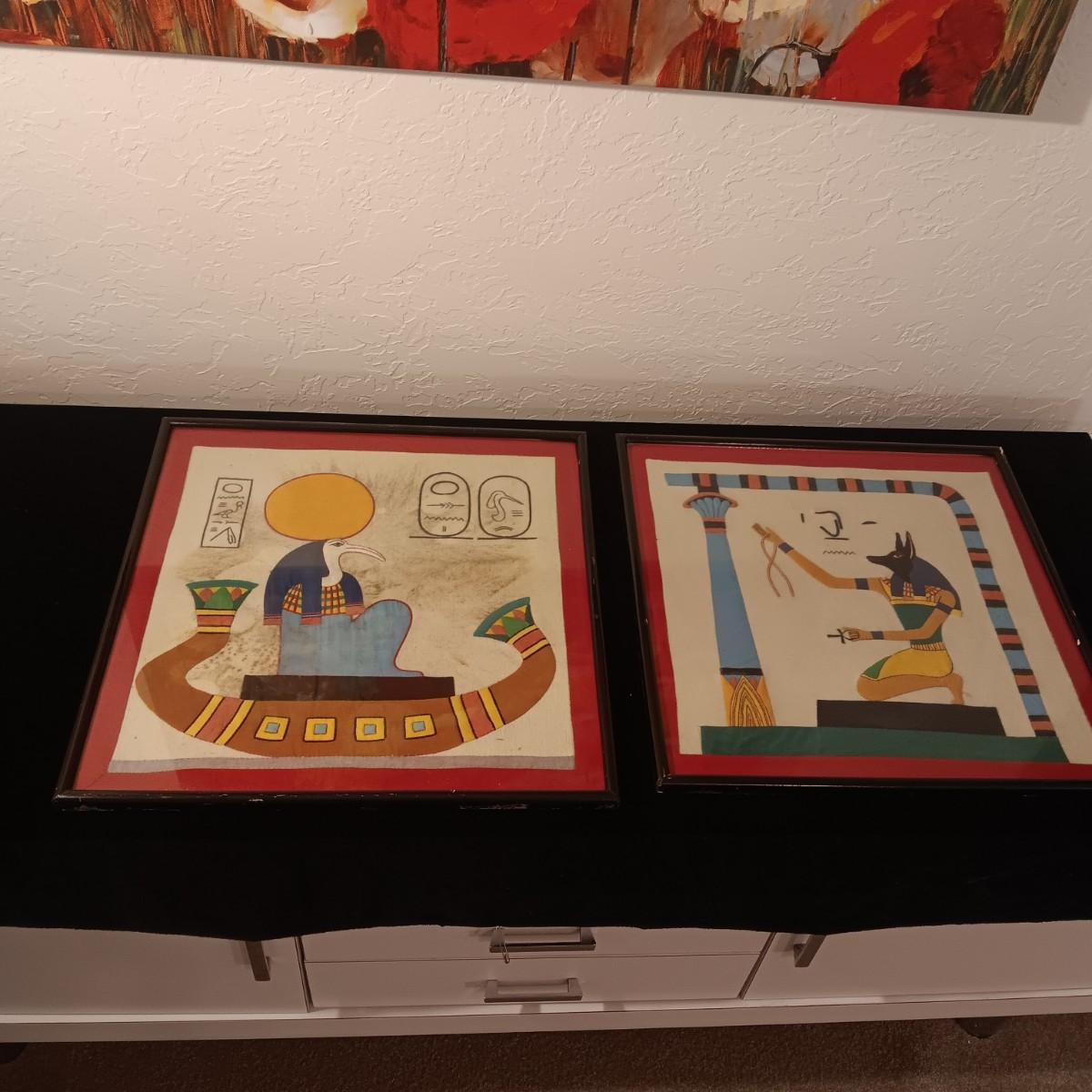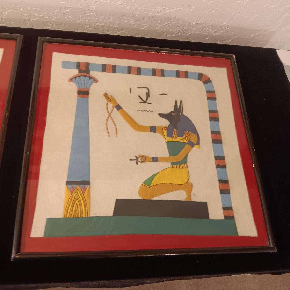 2 VINTAGE EGYPTIAN HAND STITCHED CLOTH TAPESTRY