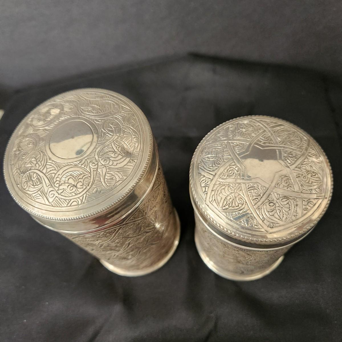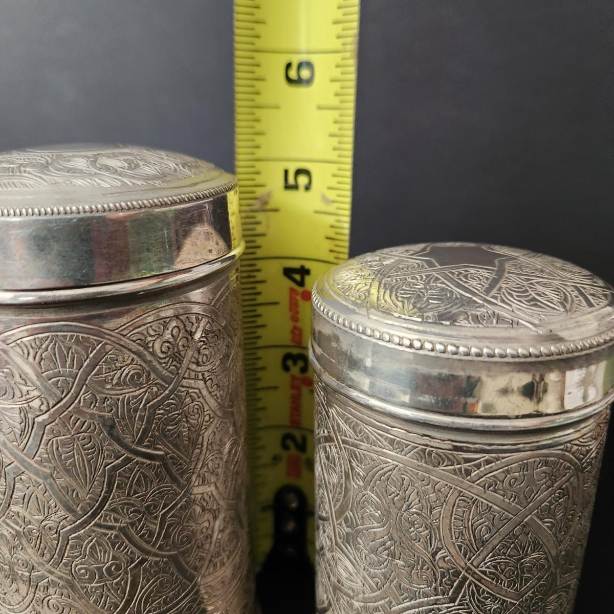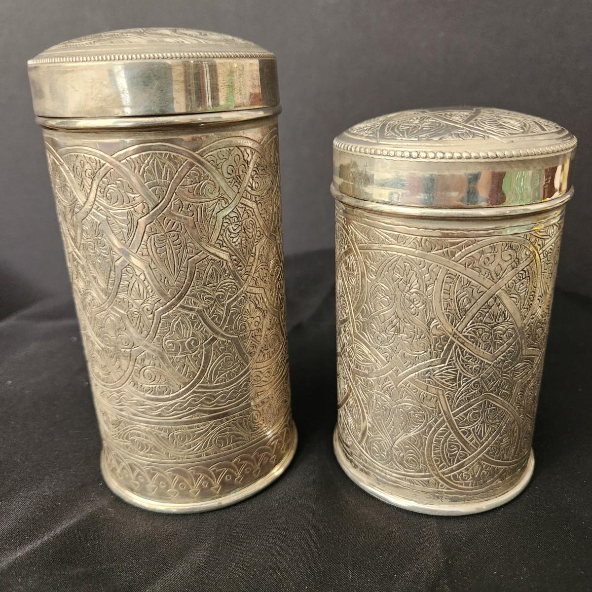 2 Vintage Egyptian silver box Canisters Hallmarked on Bottoms and Lids