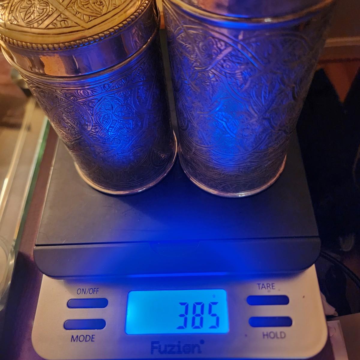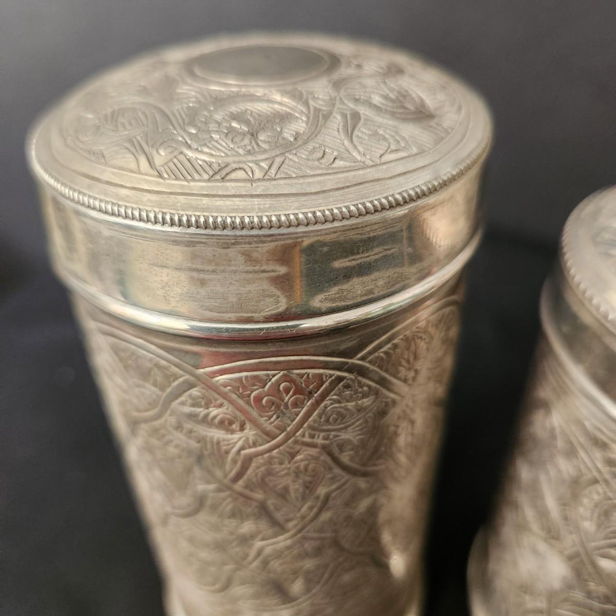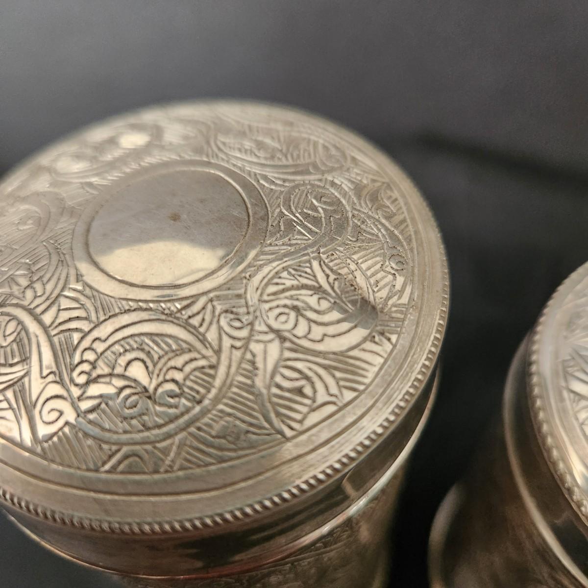 2 Vintage Egyptian silver box Canisters Hallmarked on Bottoms and Lids