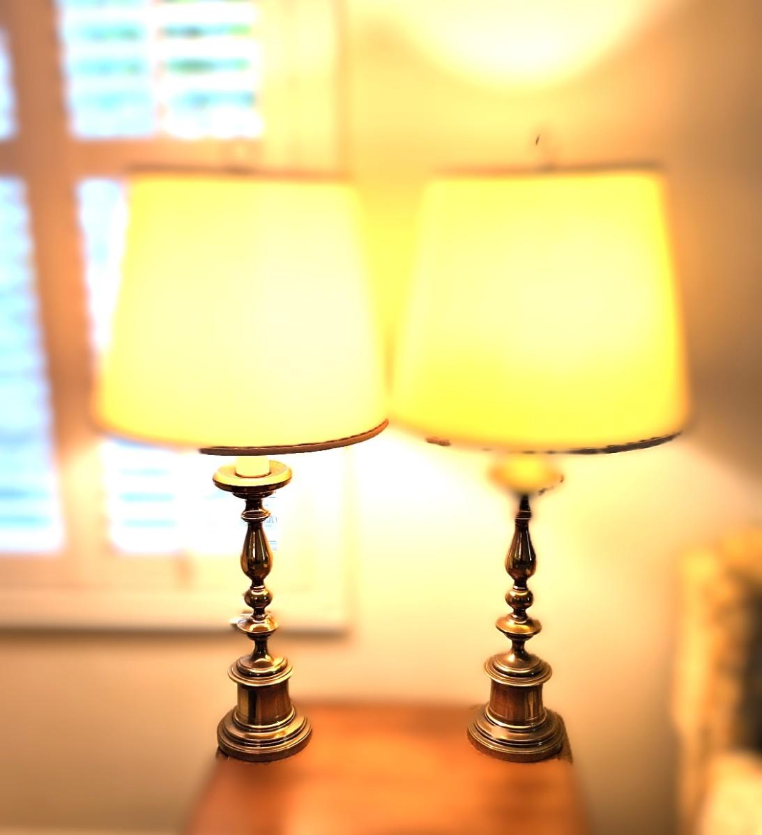 2 Vintage Ethan Allen Brass Candlestick Lamps