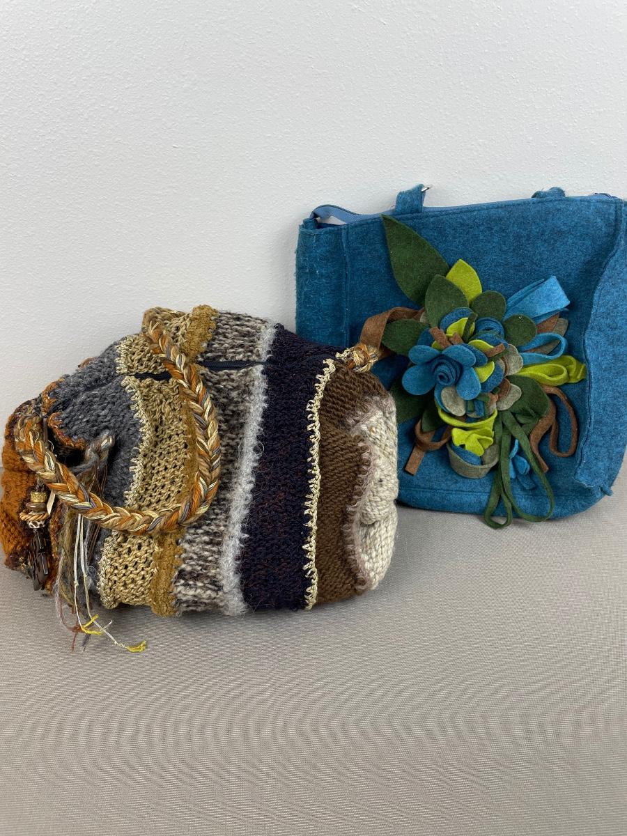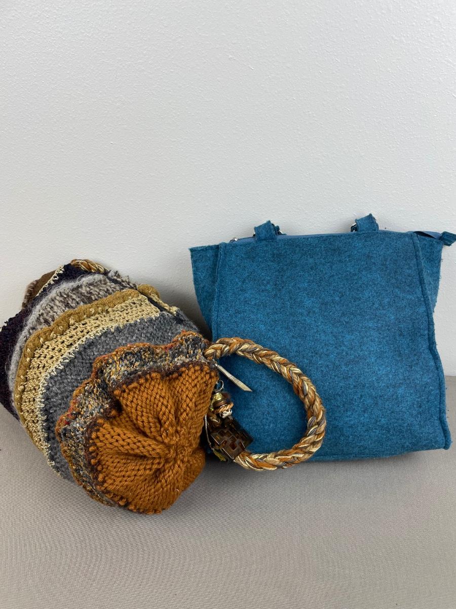 2 Vintage Fall Purses Felt and Knitted