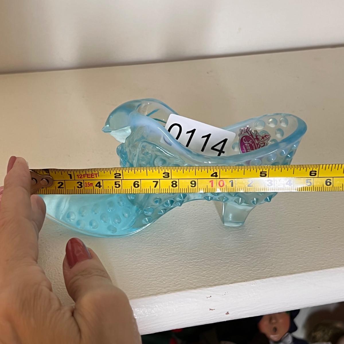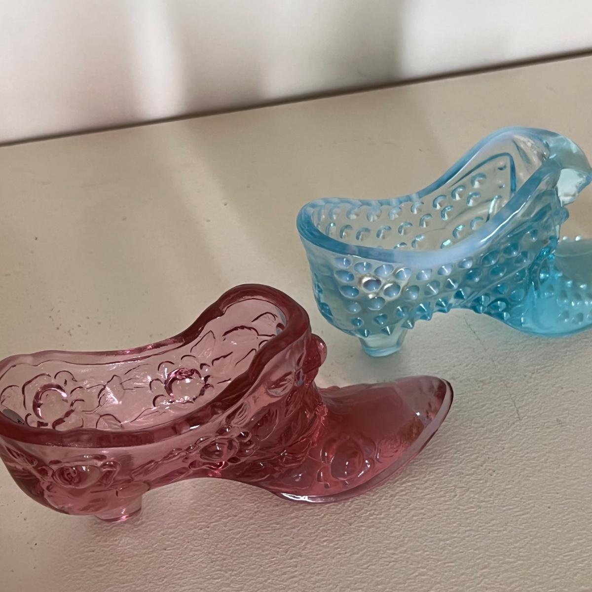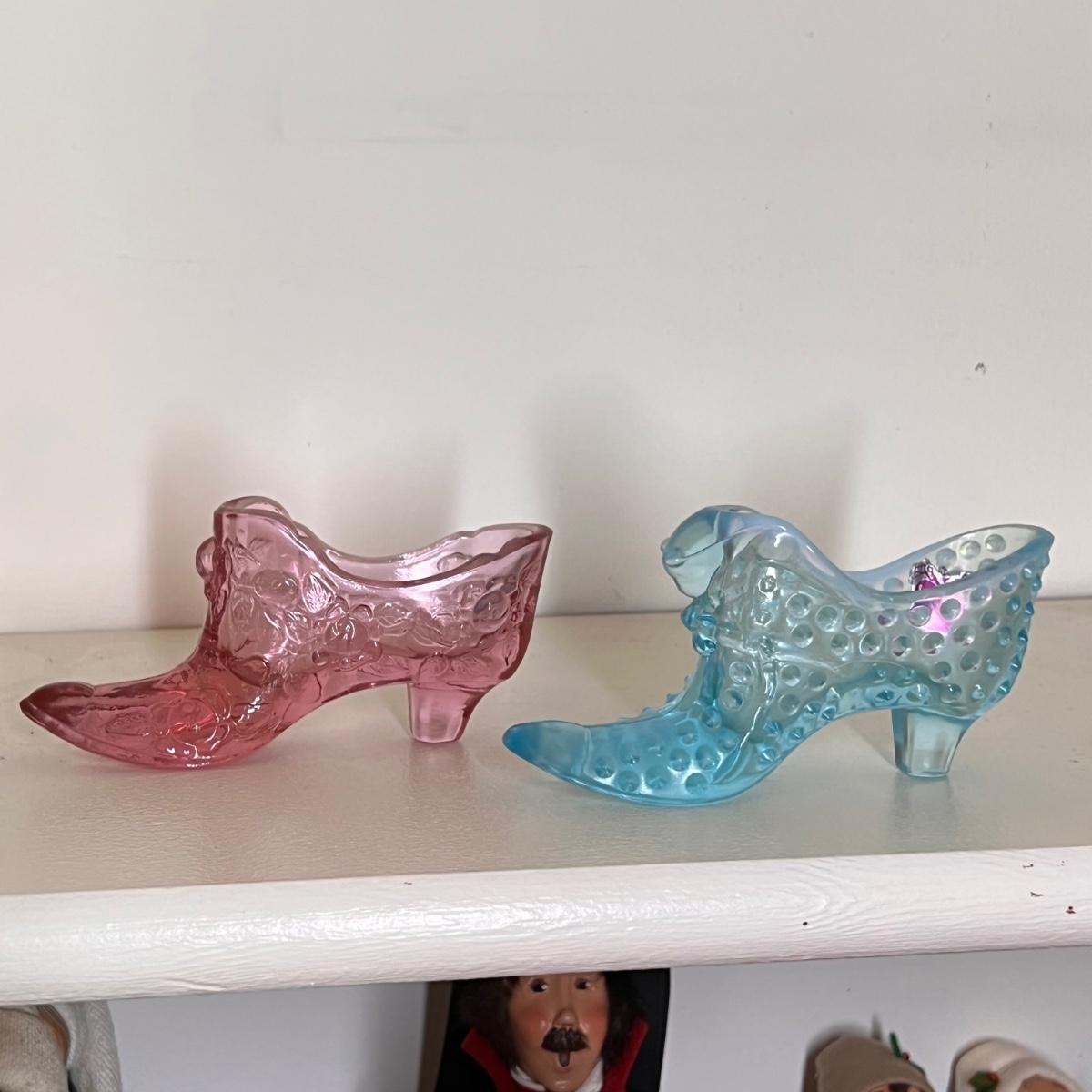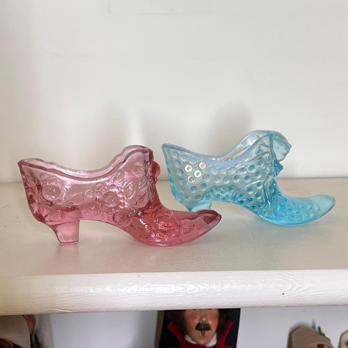 2 Fenton Art Glass Blue and pink Hobnail Glass Slipper Ware