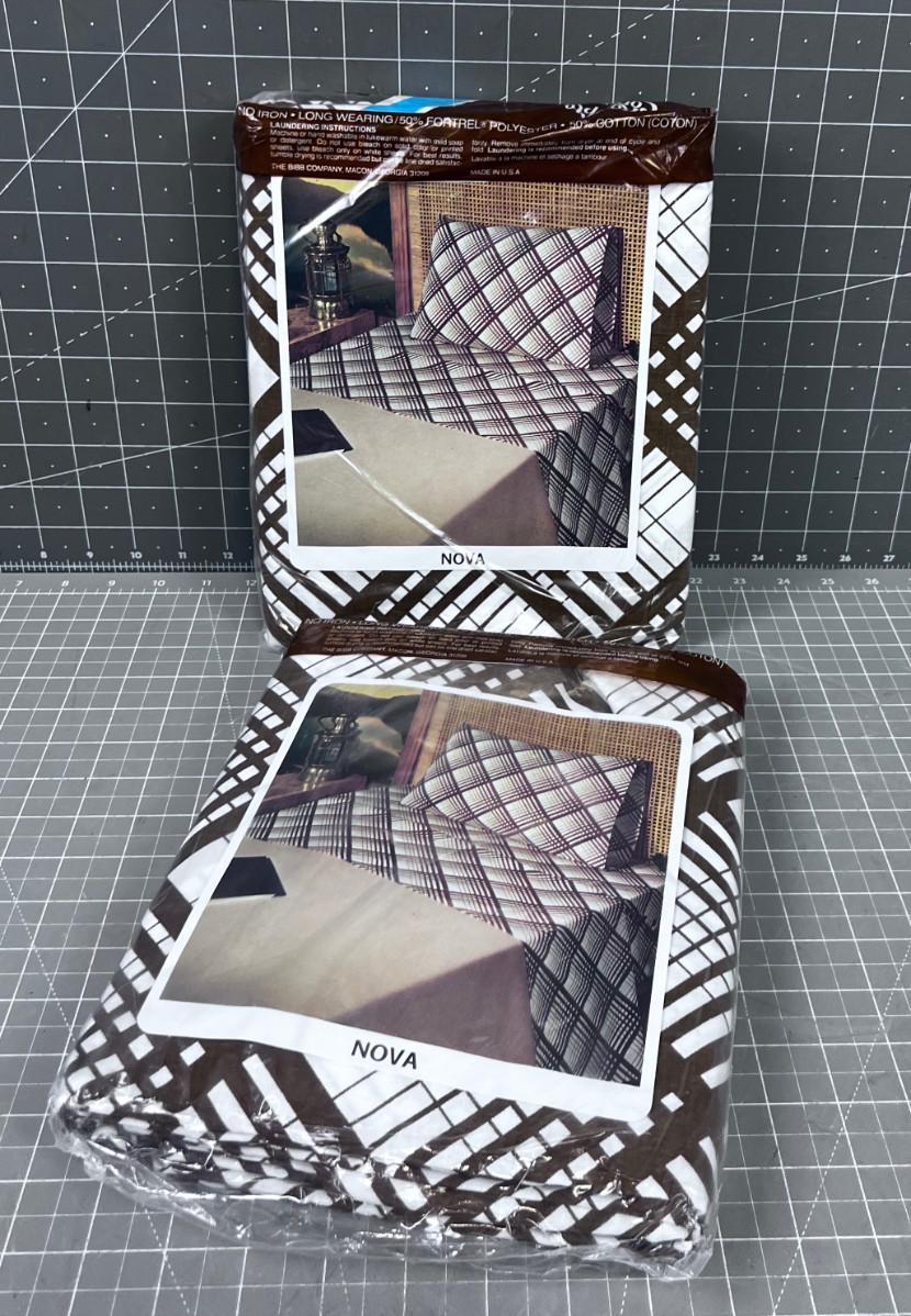 2 VINTAGE Flat Sheets Double Size Brown NEW