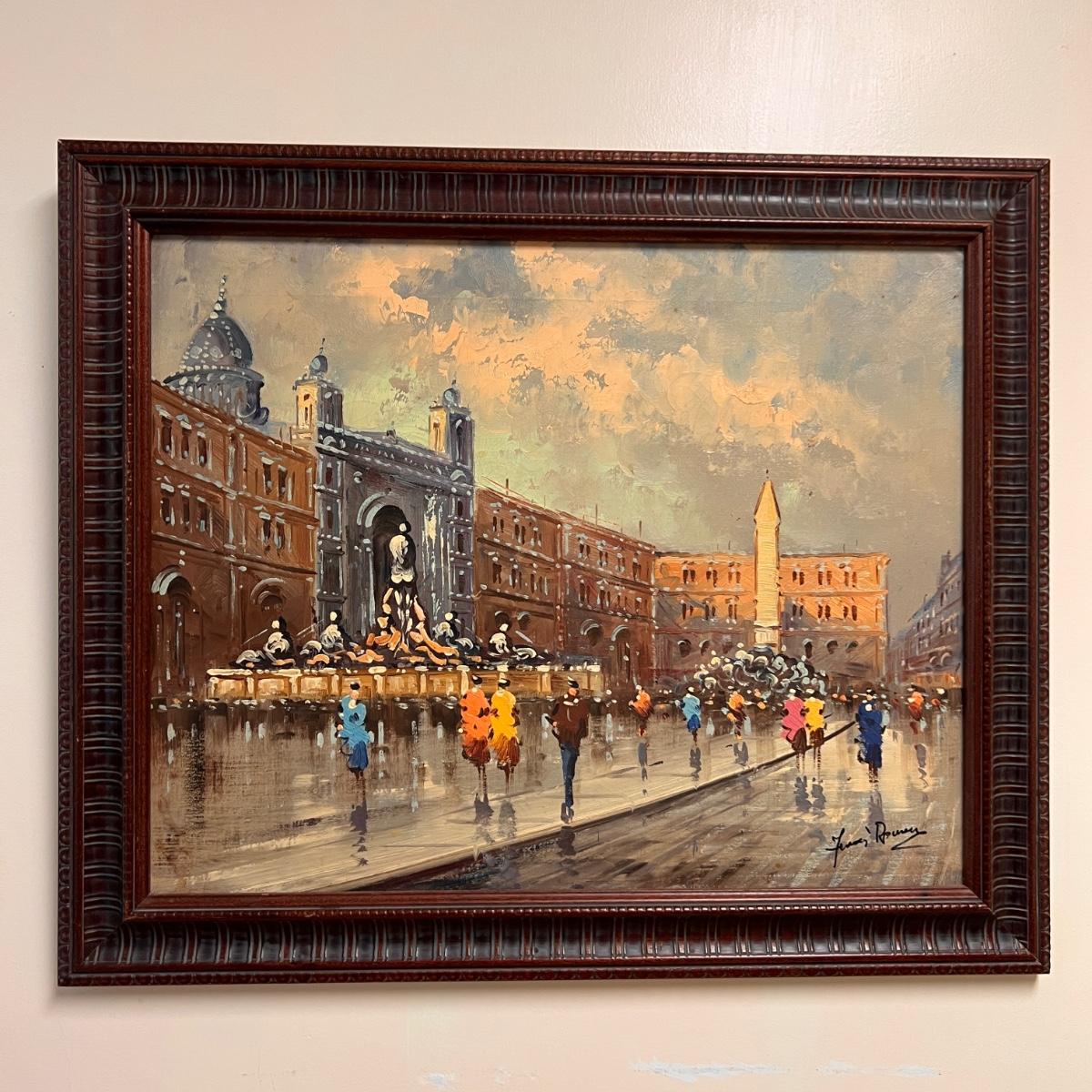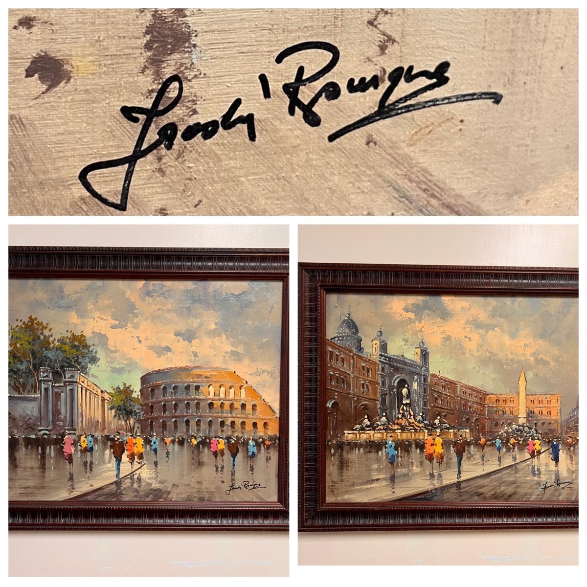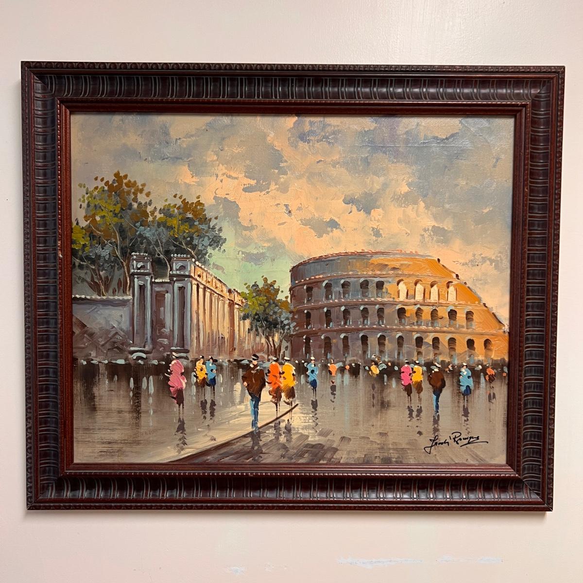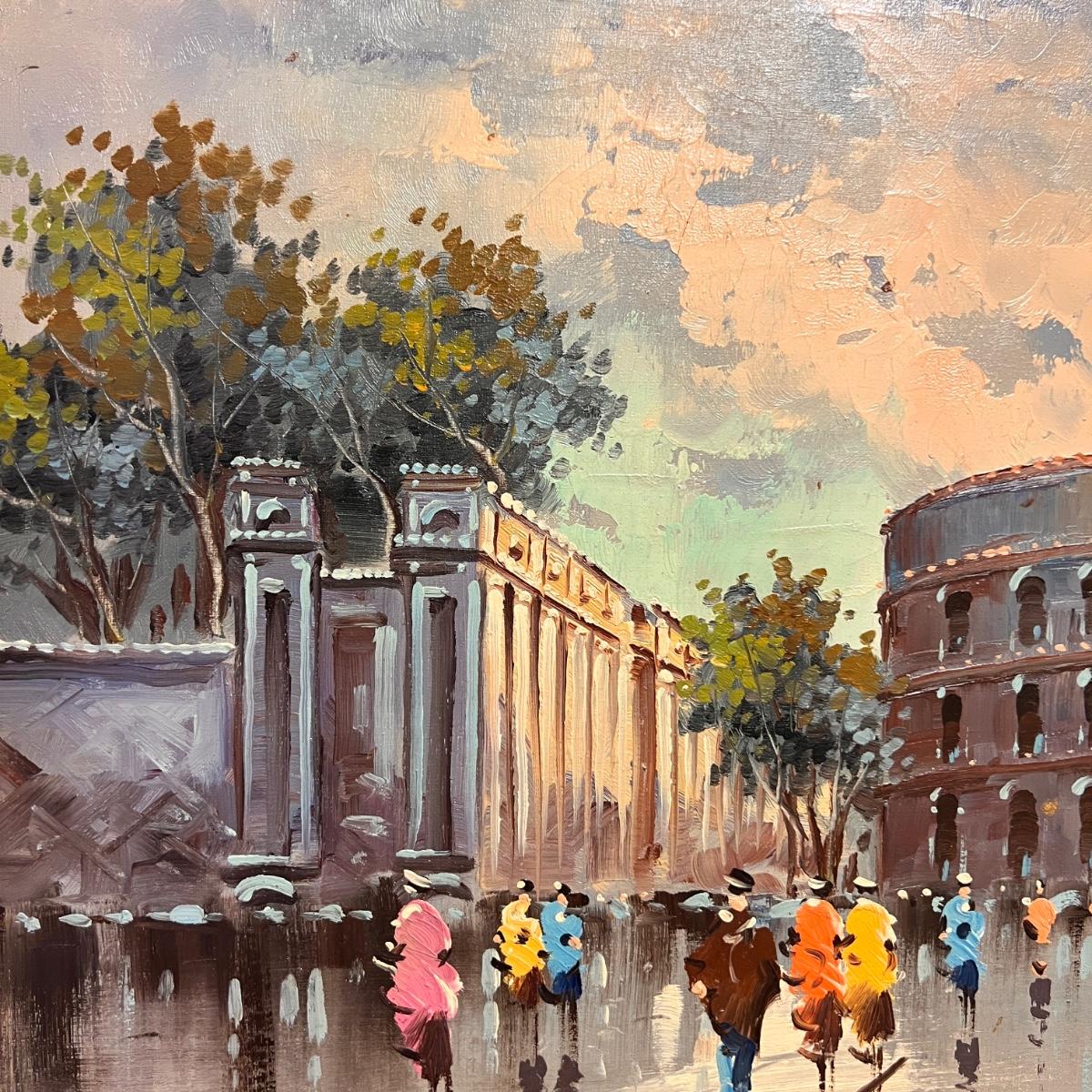 2 framed Italian oil paintings. 1 of the Piazza Novana and 1 of the Roman Colosseum.