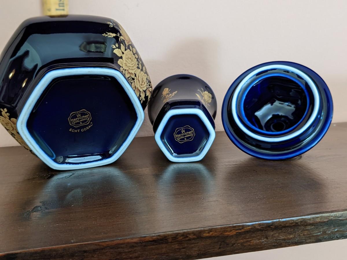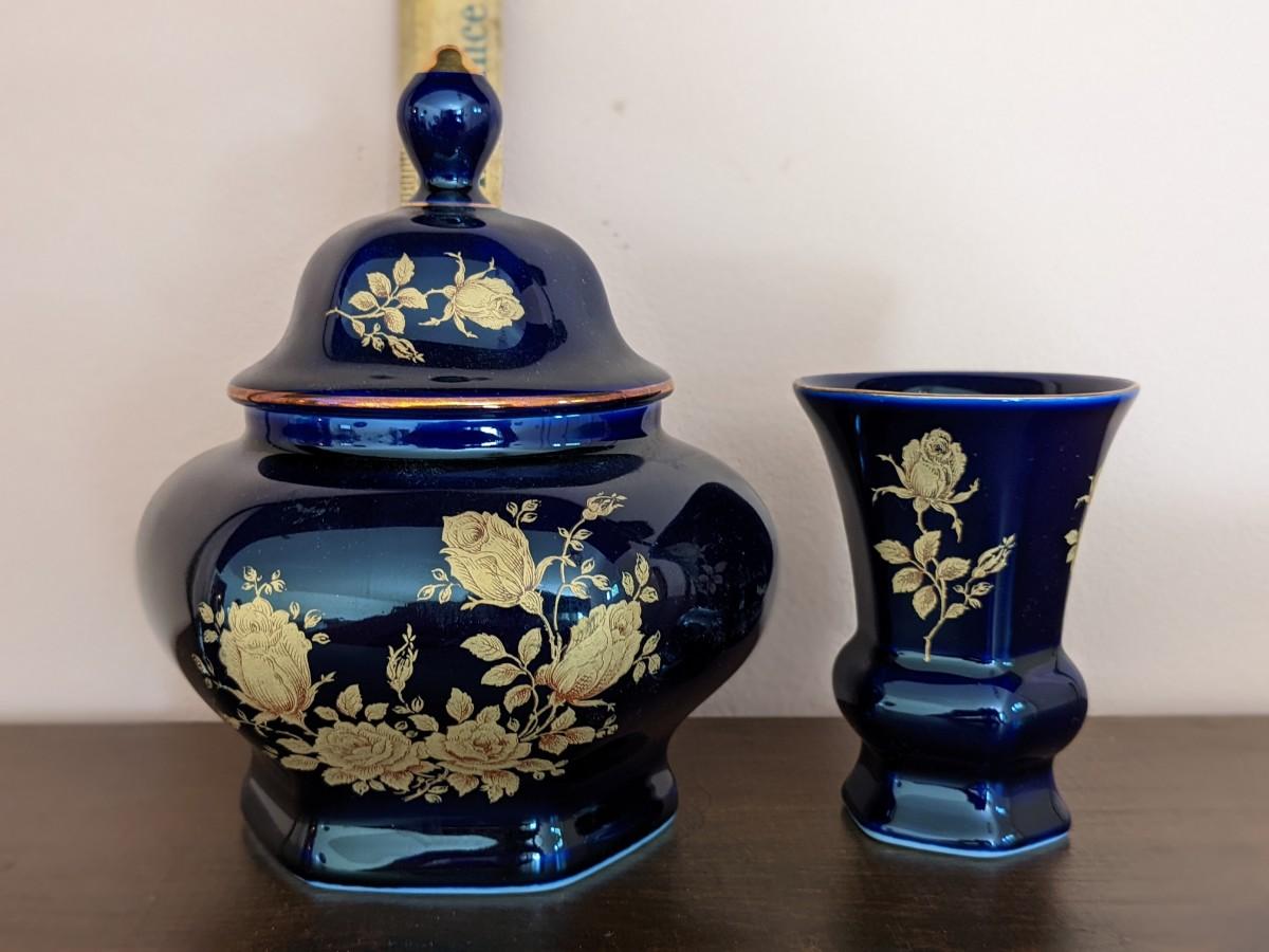 VG GERMAN BAVARIA BAREUTHER WALDSASSEN PORCELAIN VASE/BOX LID ECHT COBALT