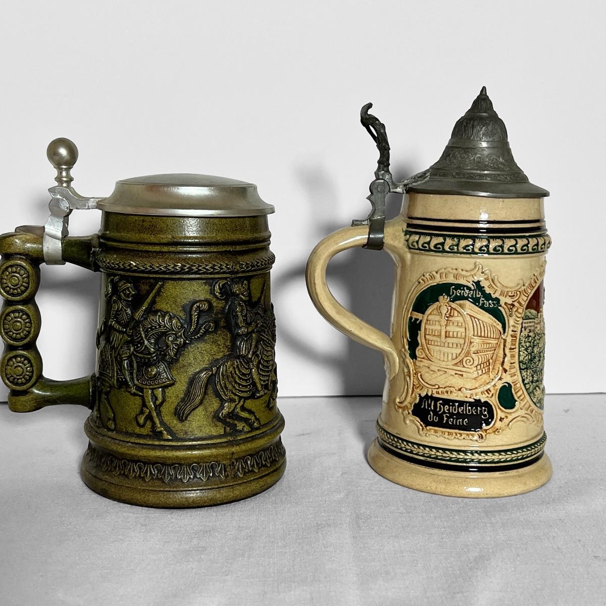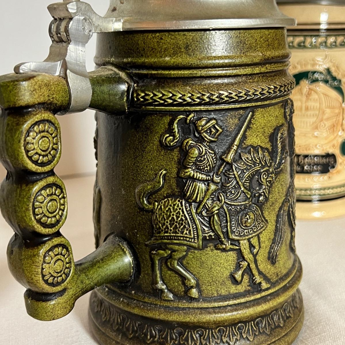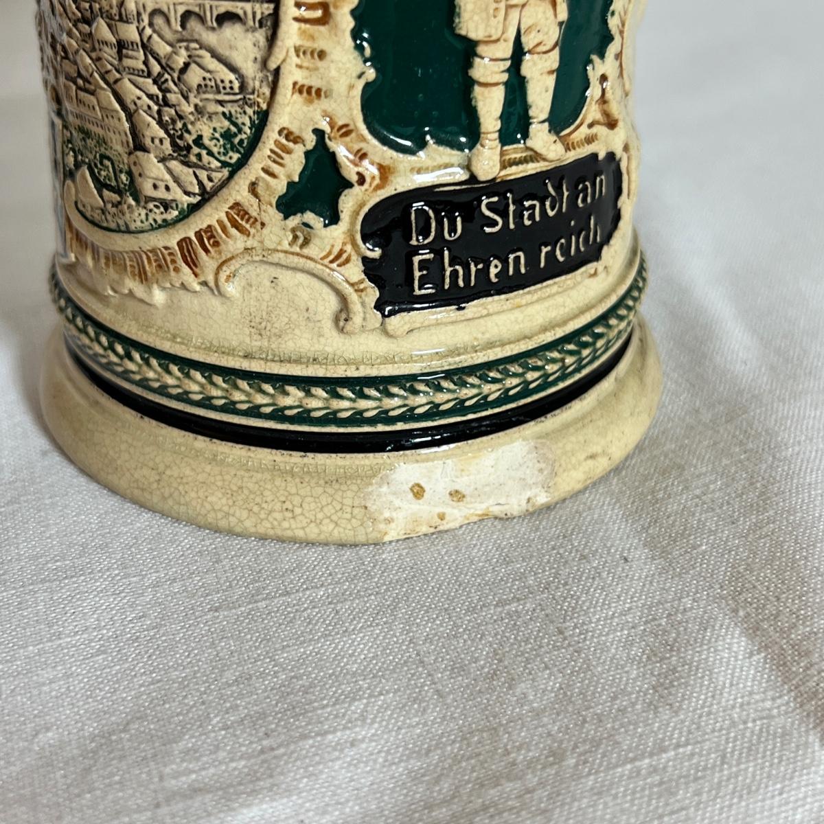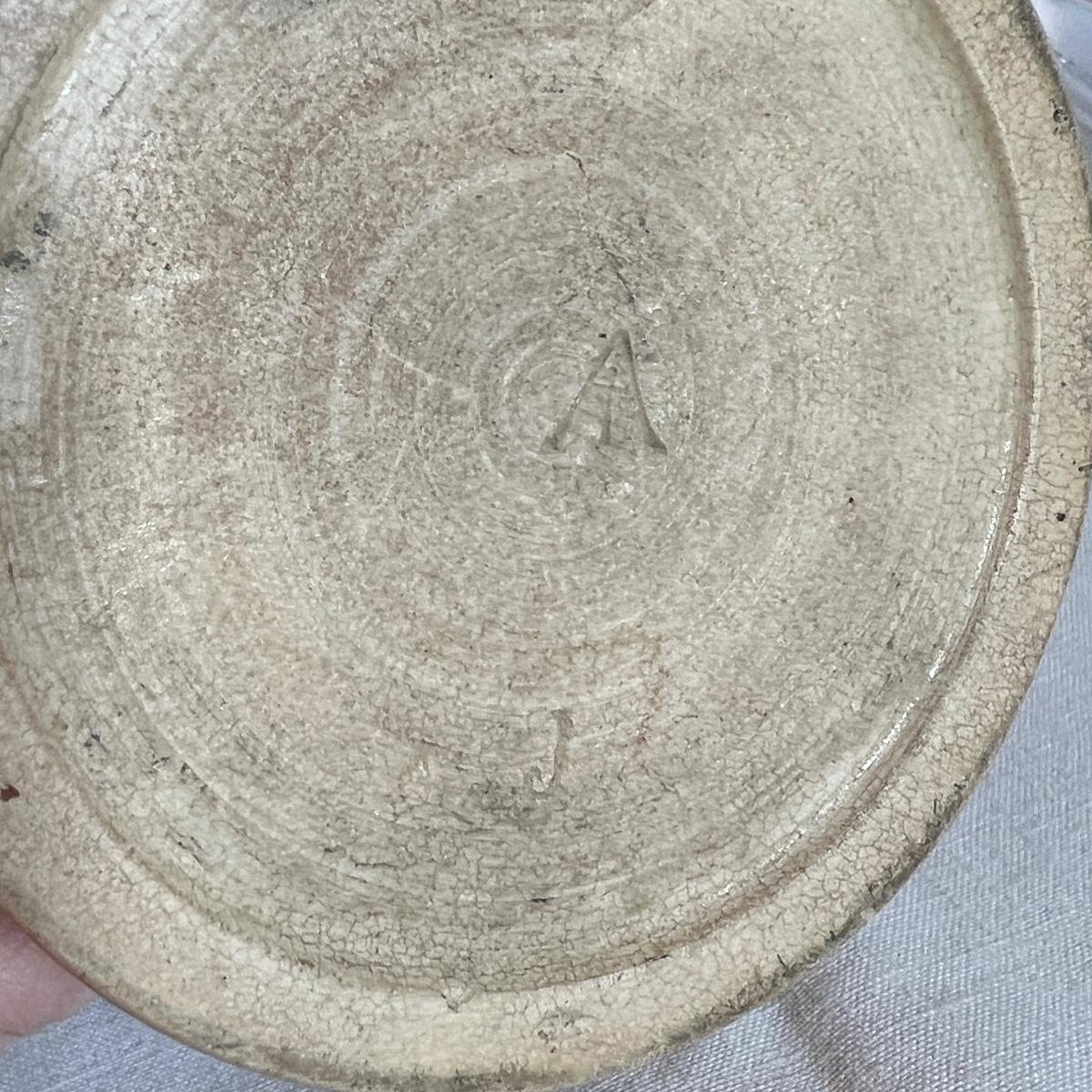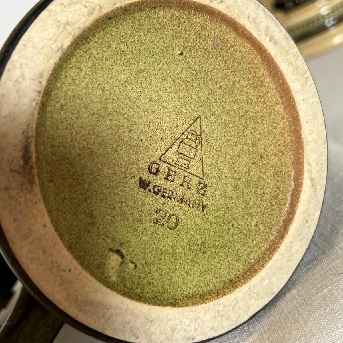Green one is Gerz West Germany. Cream colored one has hallmark with an A and a J. Looks like A.J Thewalt is the maker? It has a chip as shown in pic.