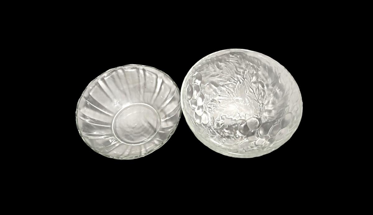 1. Arcoroc USA 9" Arcade Bengale Nappy - 3.5"H 2. Kig Indonesia Vintage Clear 10" Salad Bowl - 4.75"H