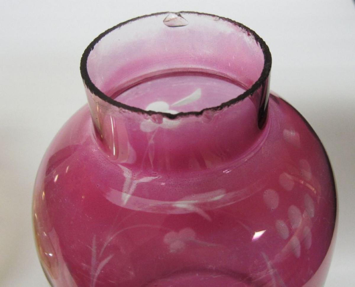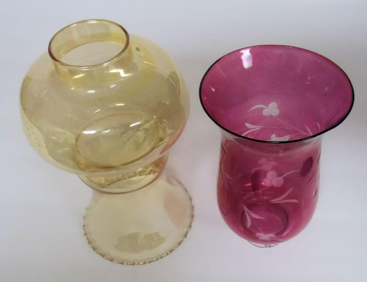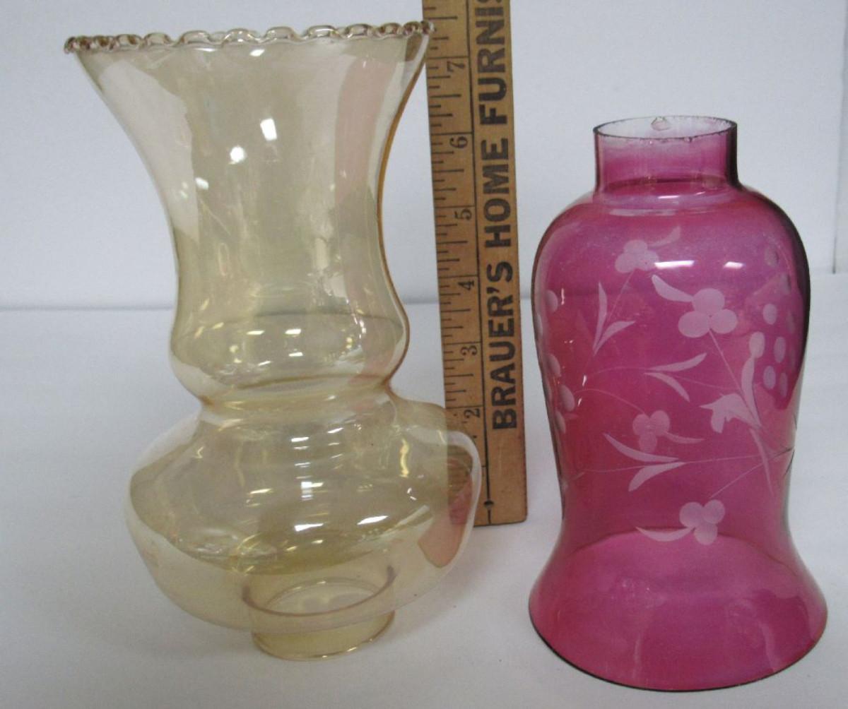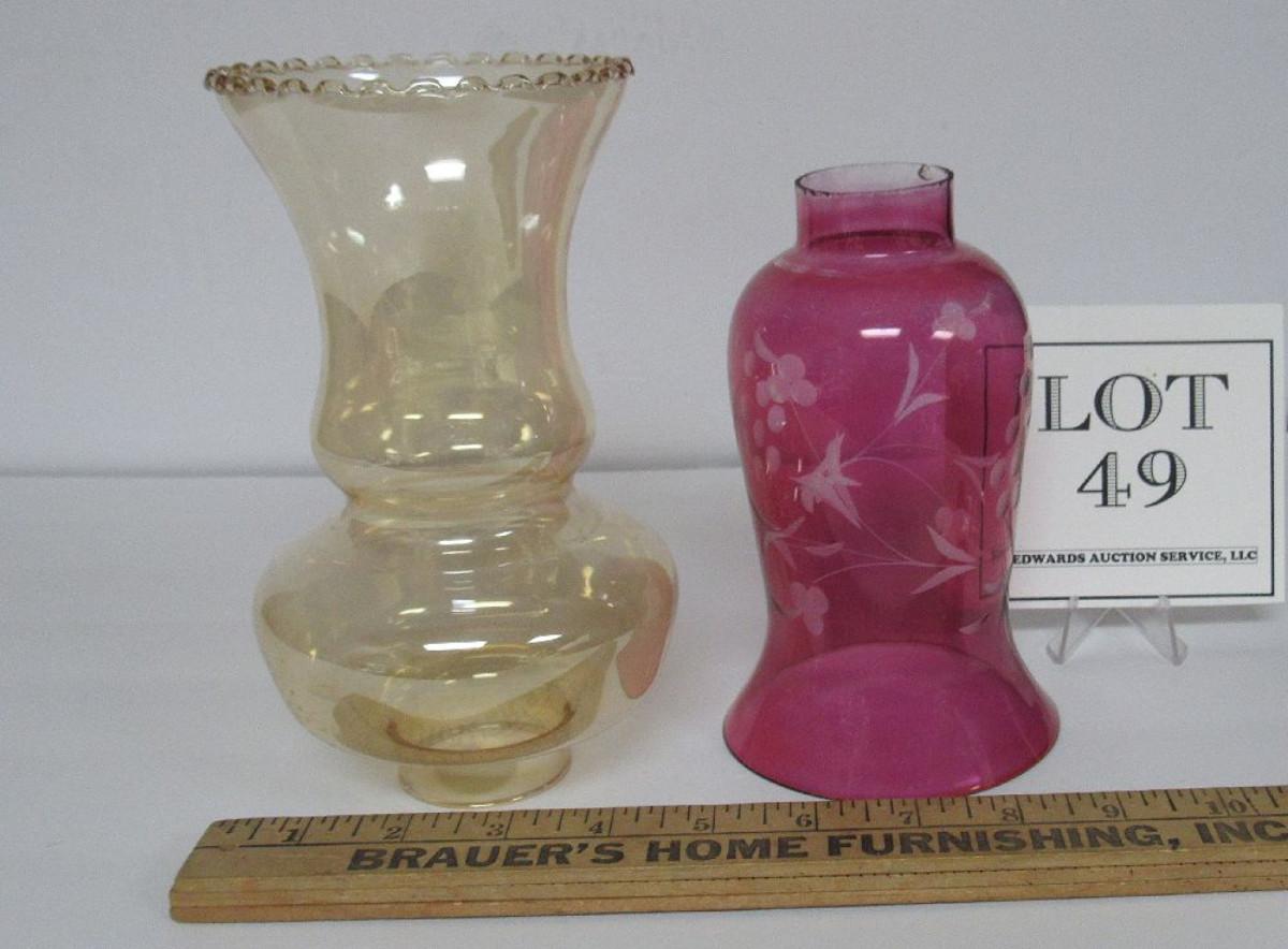 The ruby flashed one has chips on the bottom rim as seen in photos, and is a little scratched.