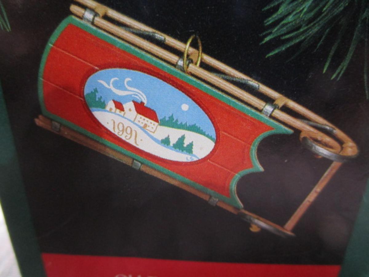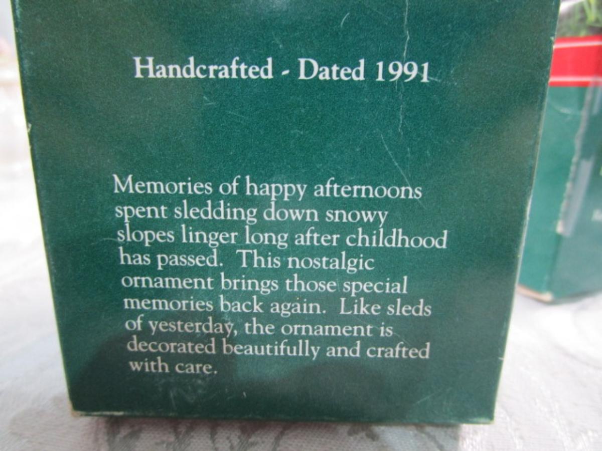 In boxes, 1 old fashioned sled 1991, raccoon 1991