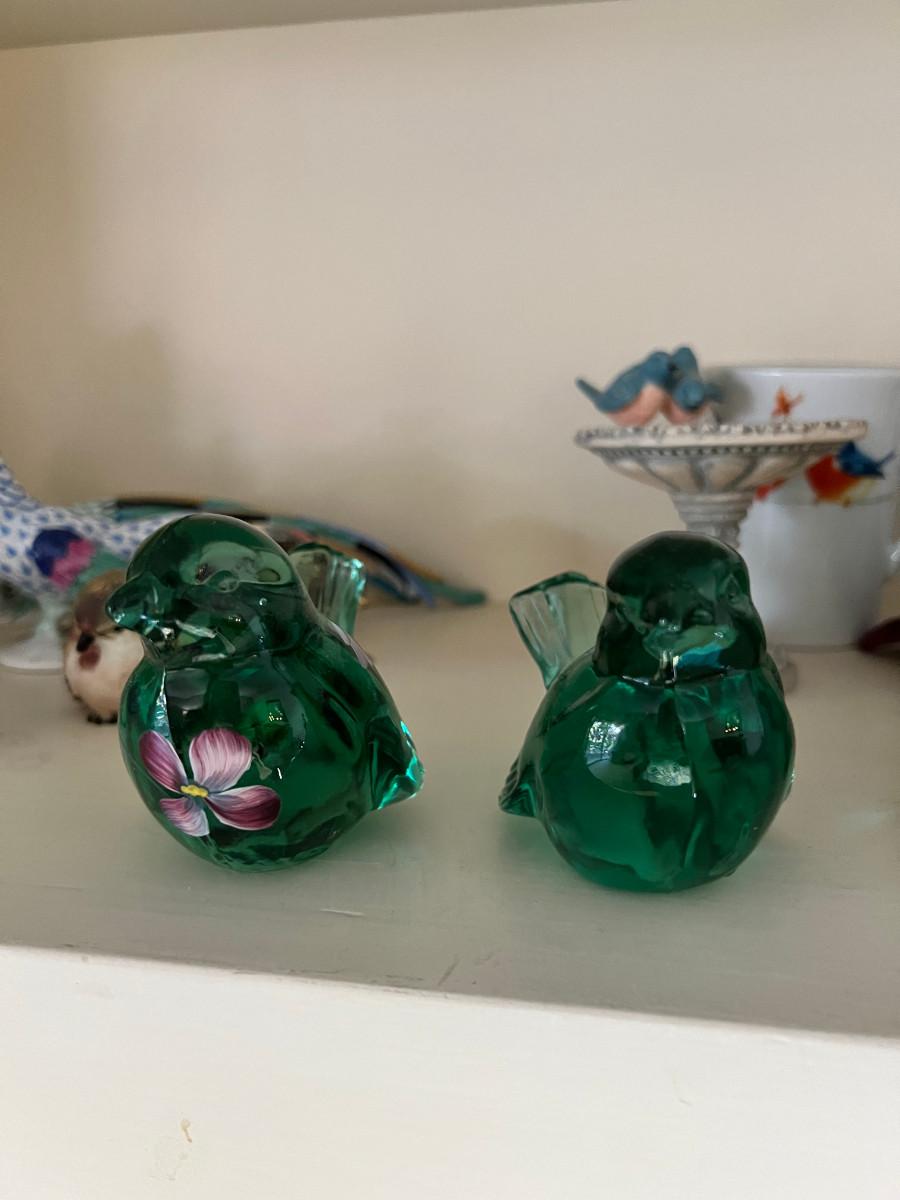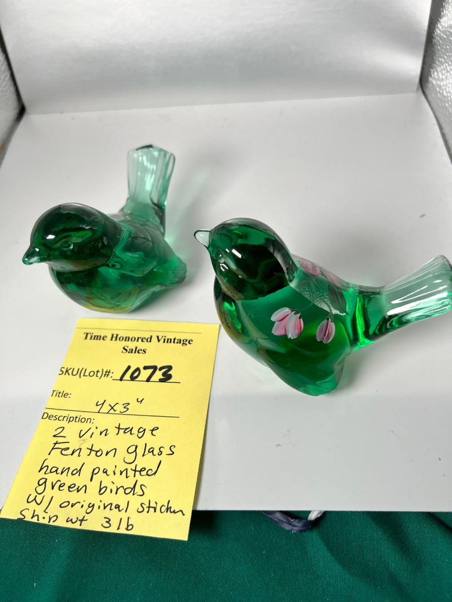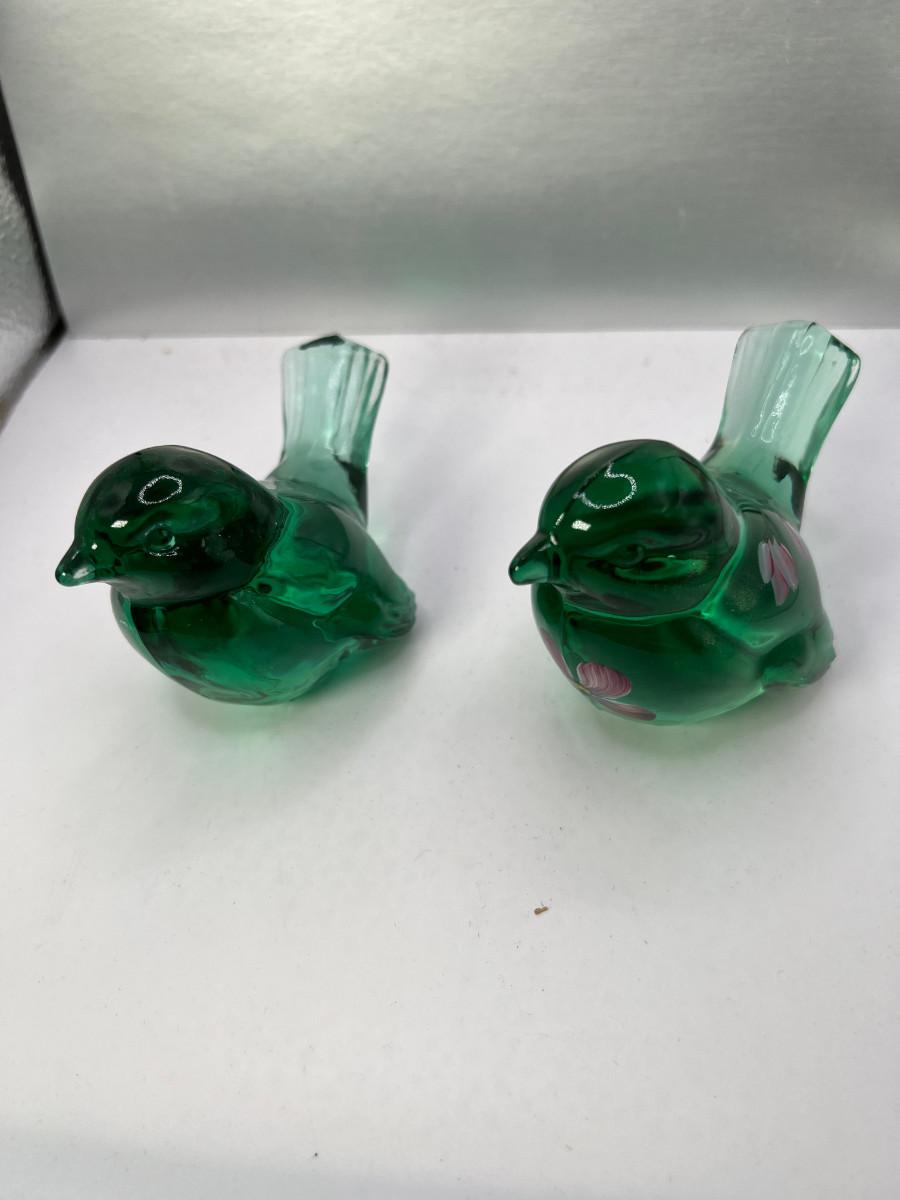2 vintage handmade Fenton Brand glass birds
