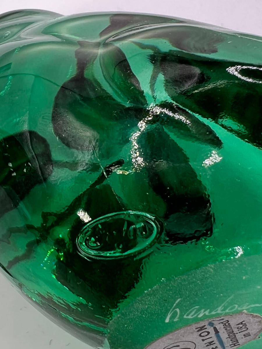 1 rare green with hand painted flowers, 1 plain both marked Fenton with original stickers 3 X6". beautiful and hard to find.