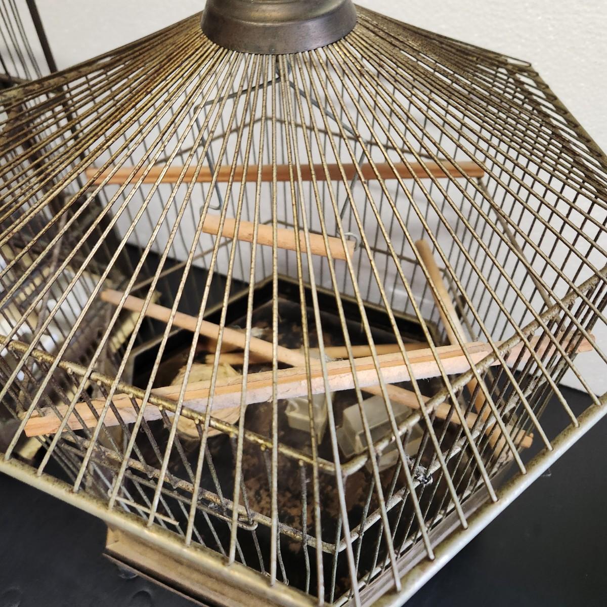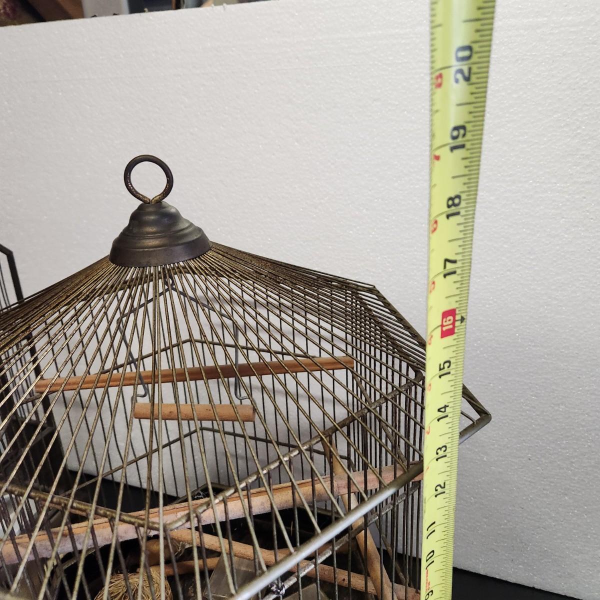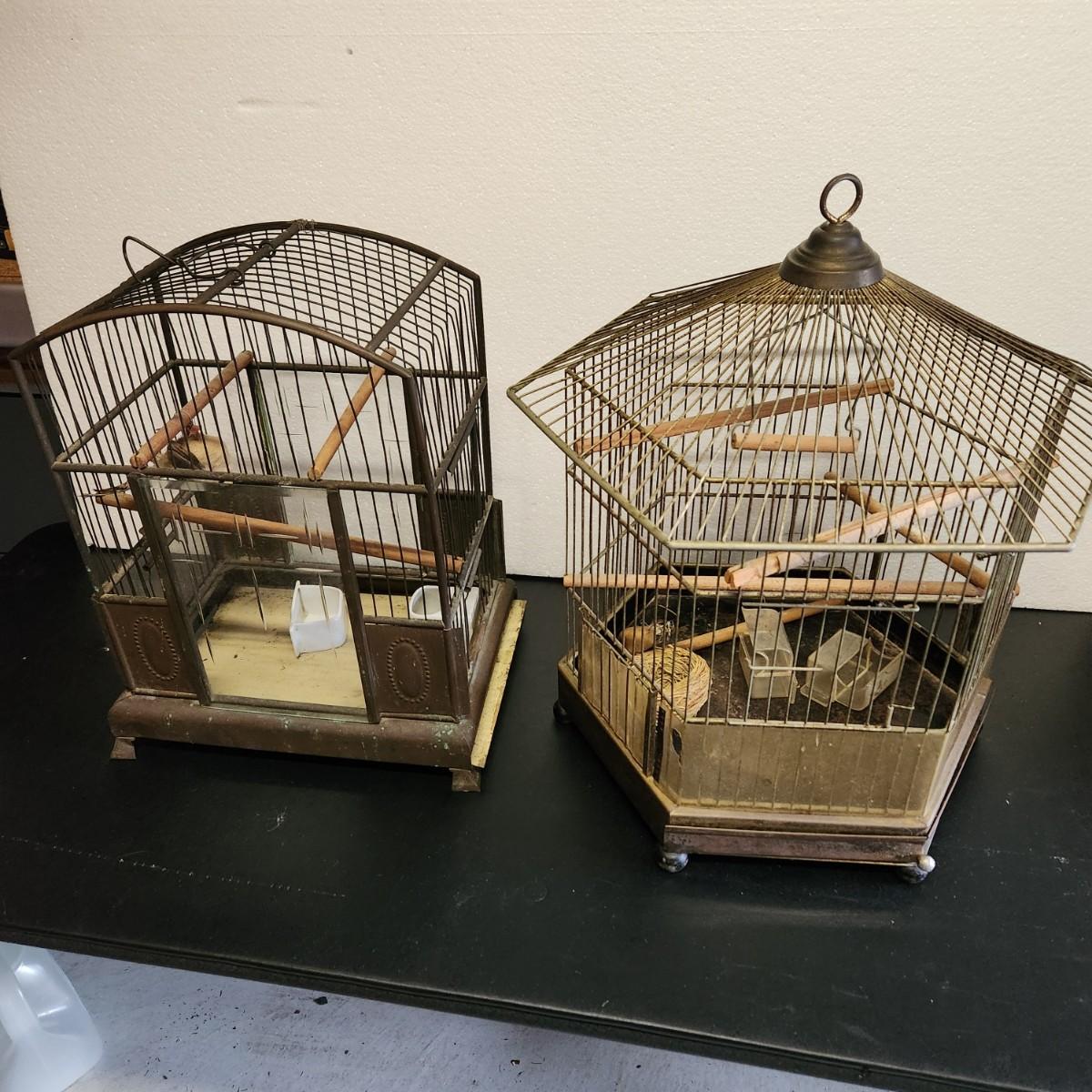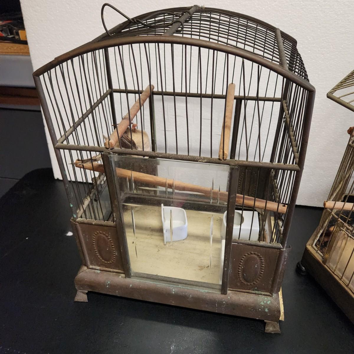 2 Vintage Hanging Wire Bird Cages 1 Etched Glass Doors