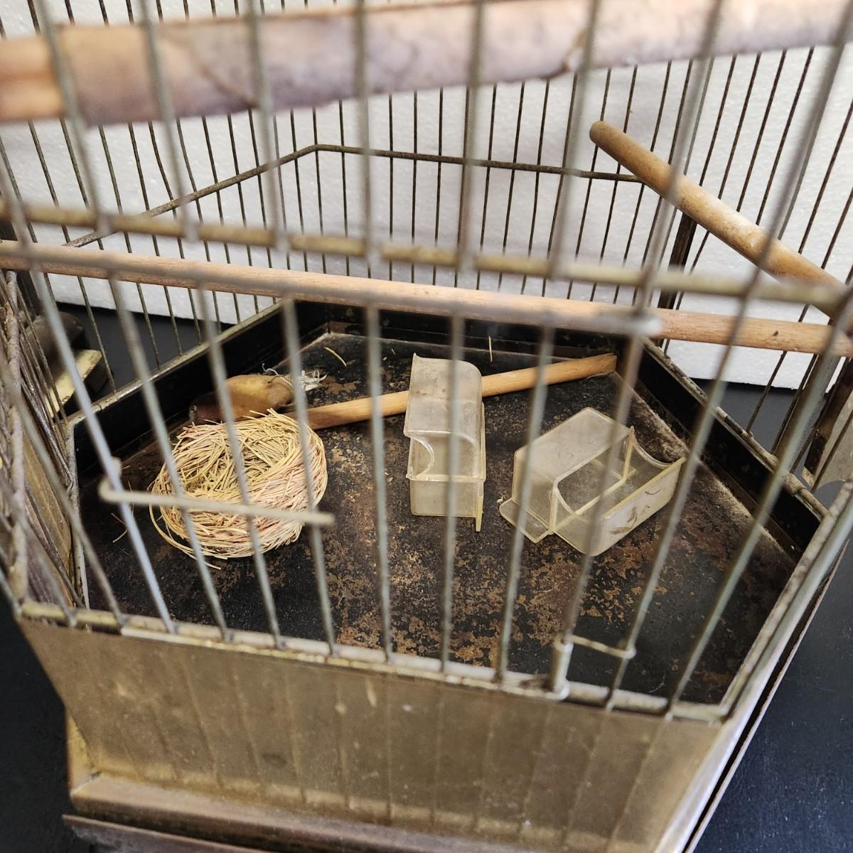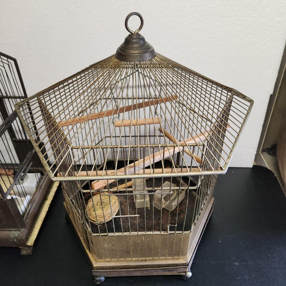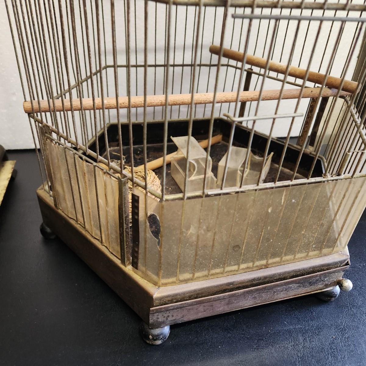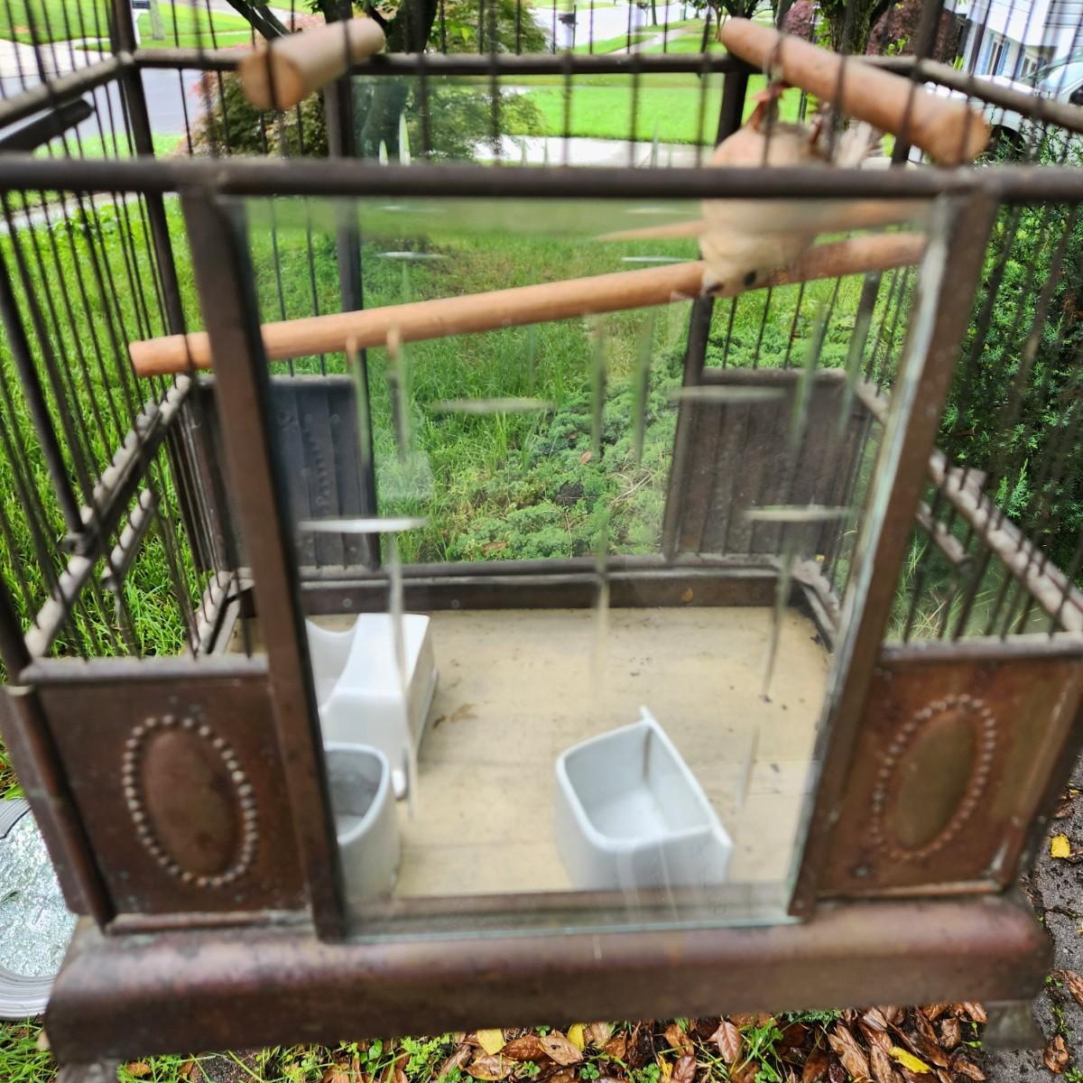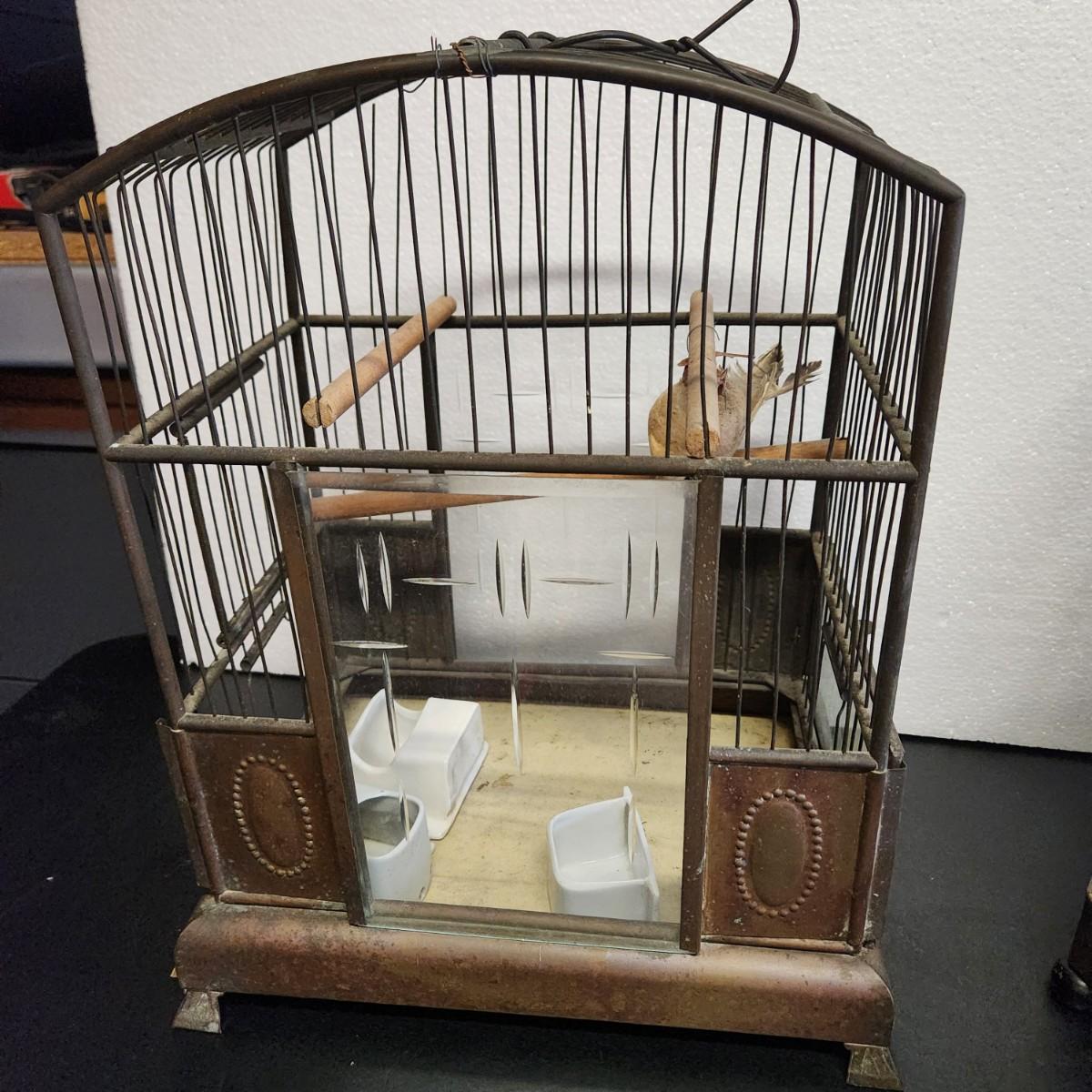 2 Vintage Hanging Wire Bird Cages 1 Etched Glass Doors