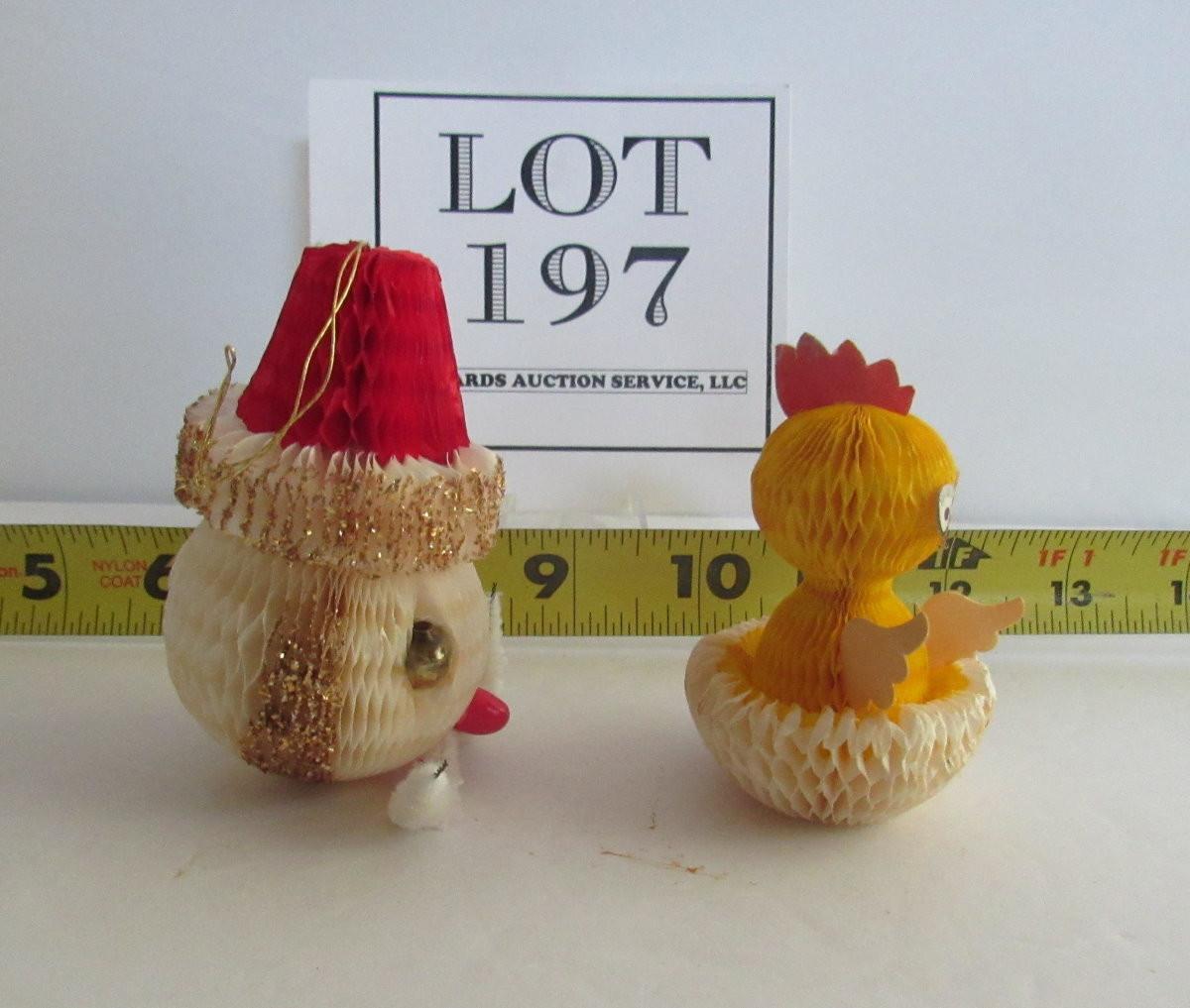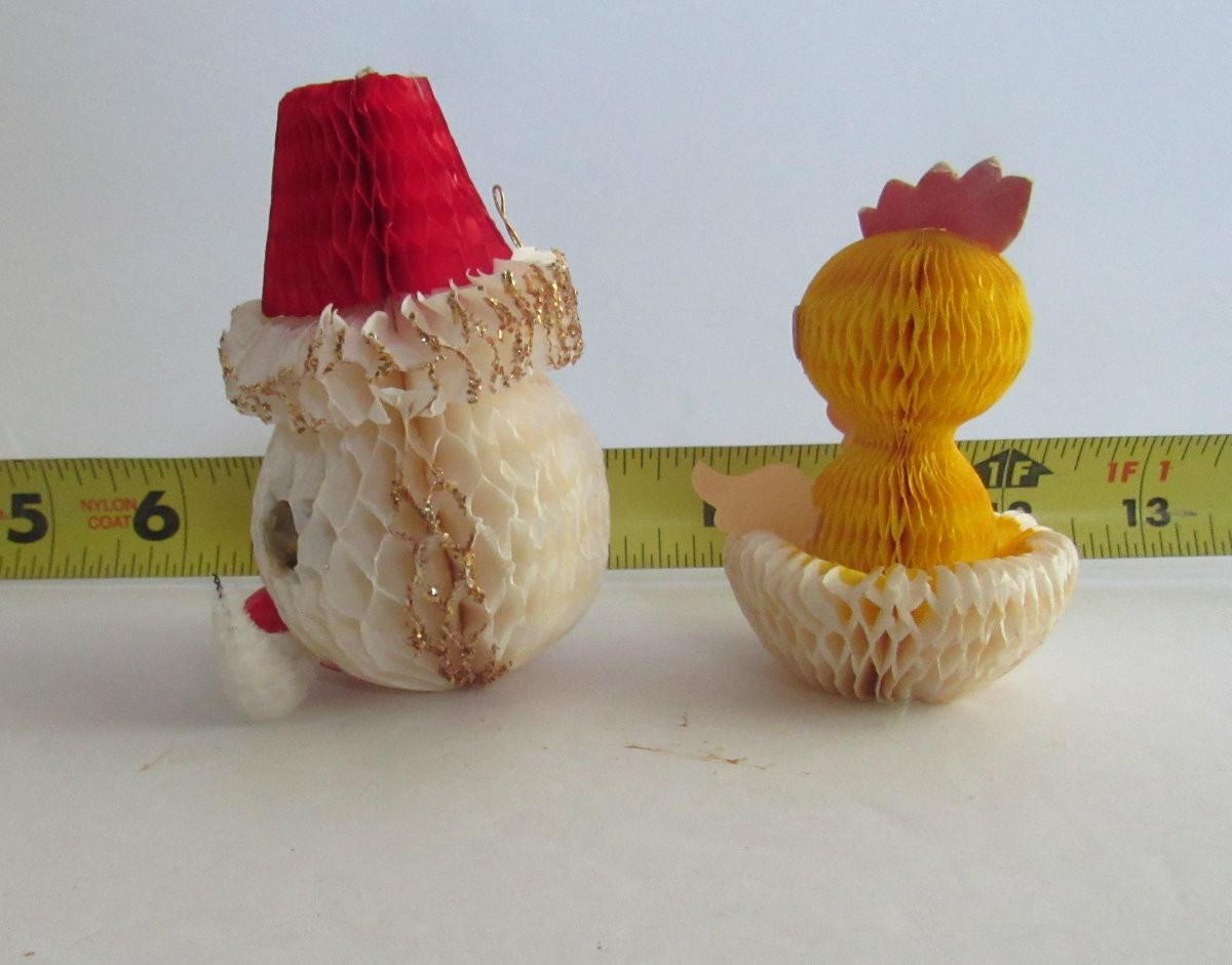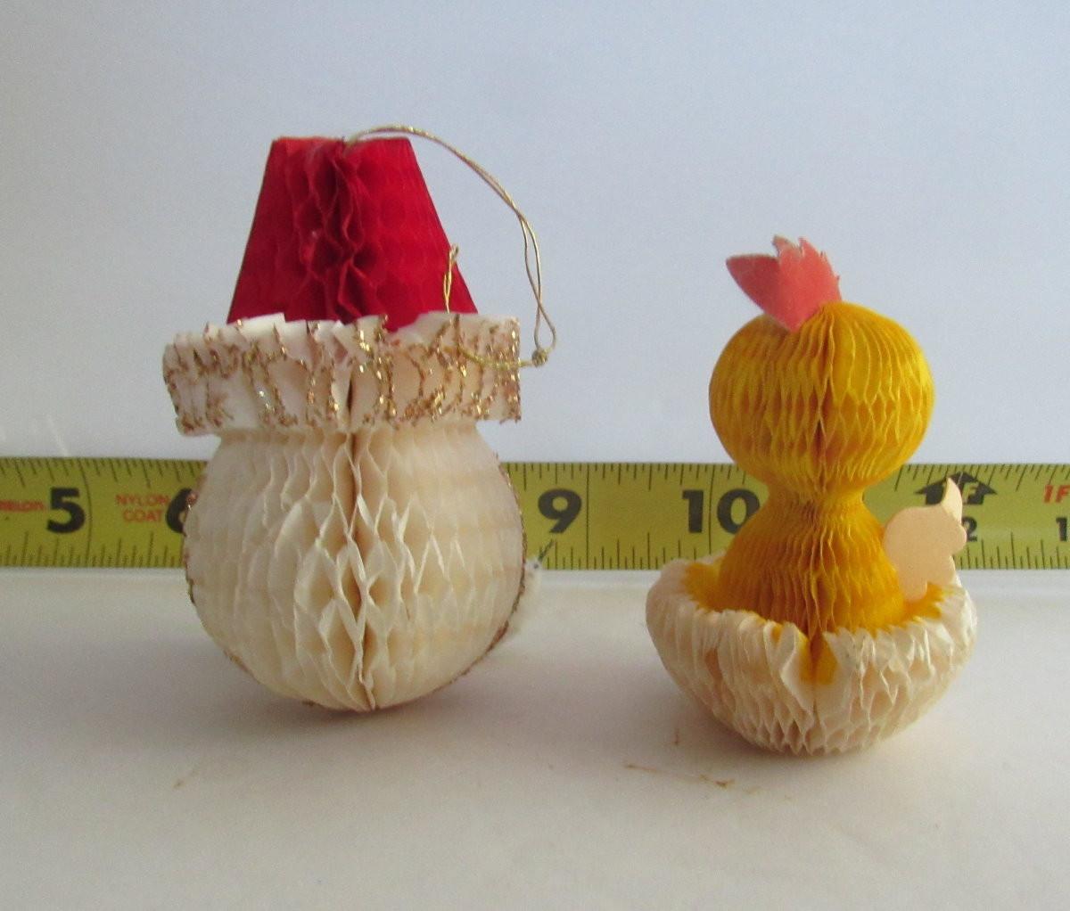 2 Vintage Honeycomb Items: Santa Head Ornament and Easter Chick