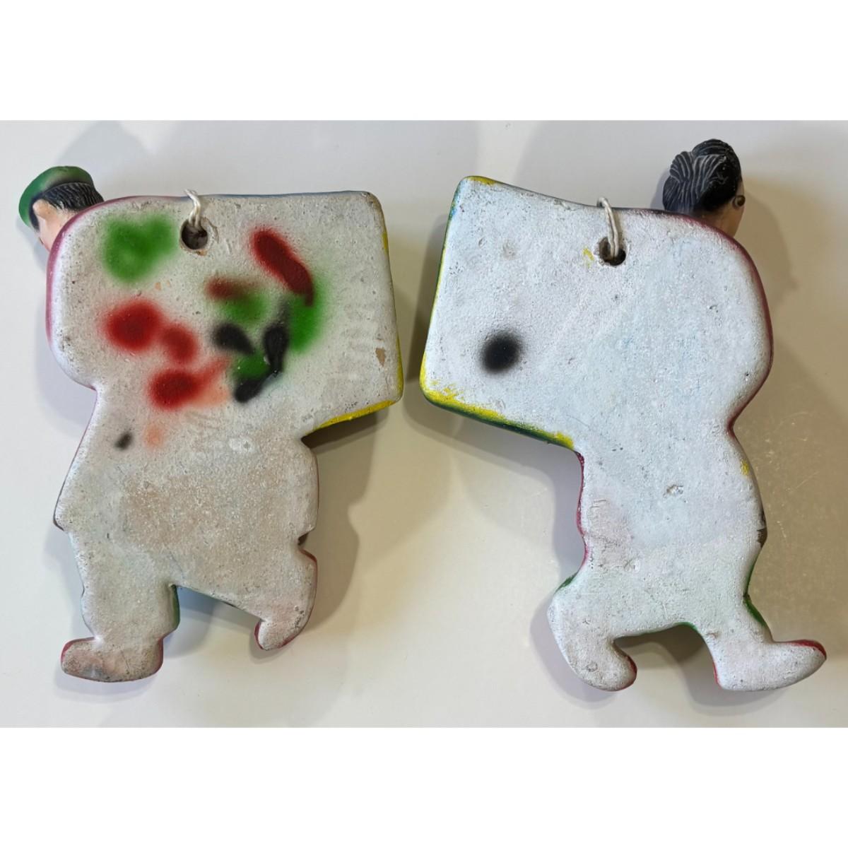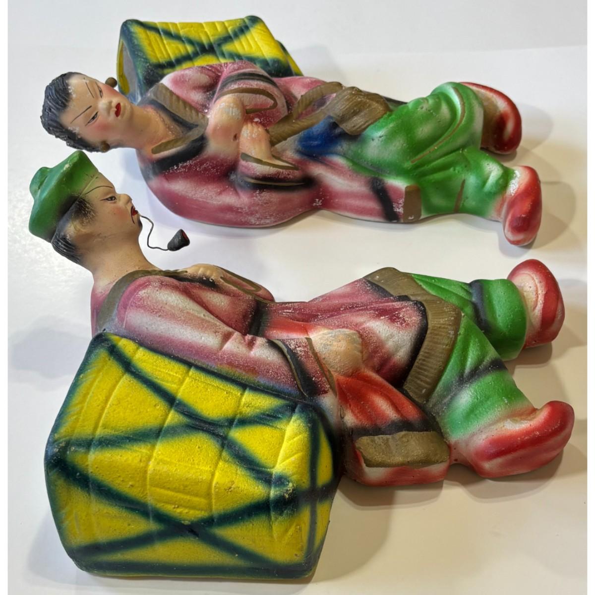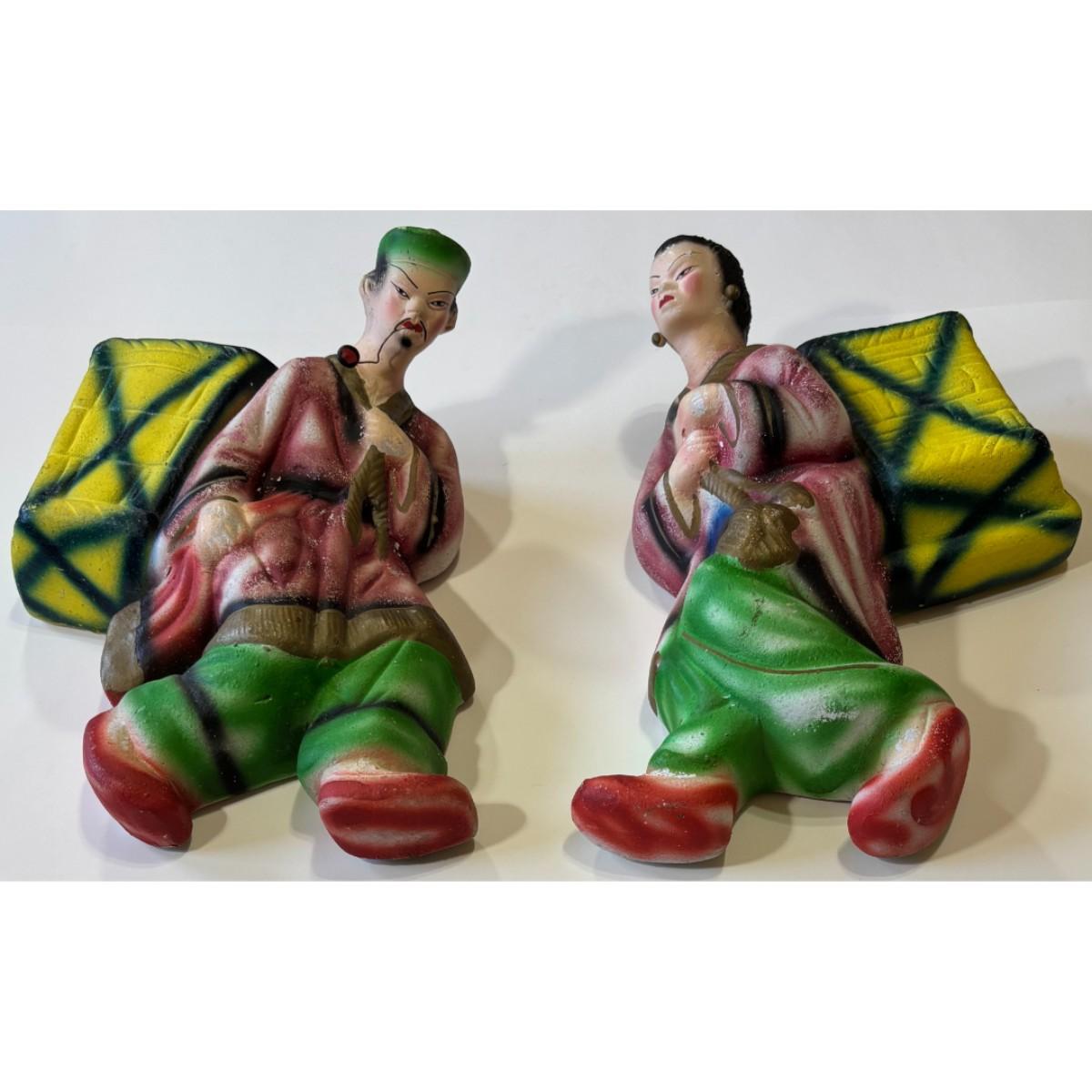 2 Vintage Japanese Ceramic Wall Vases Man Woman Orient Asia Asian Flowers Floral