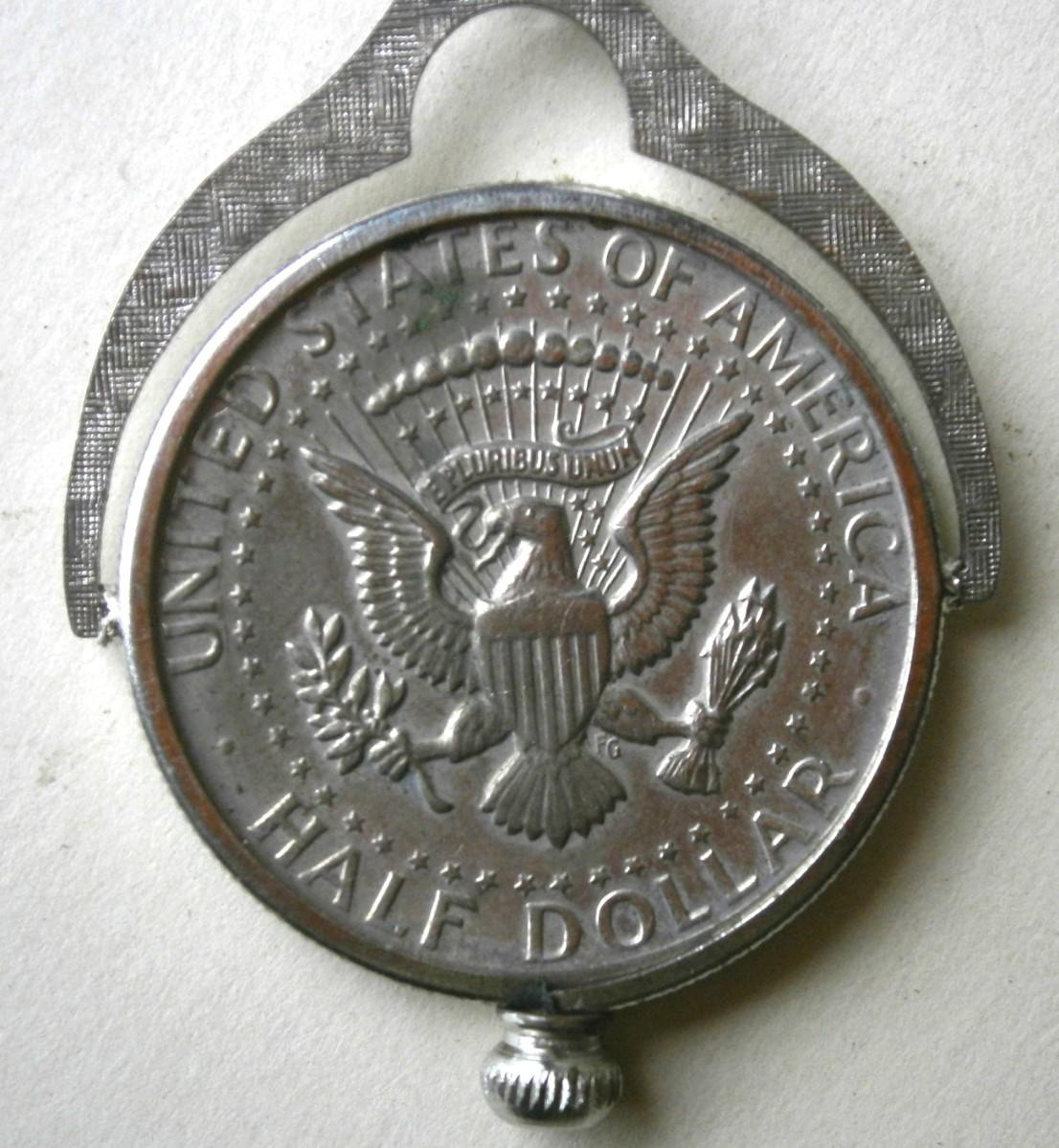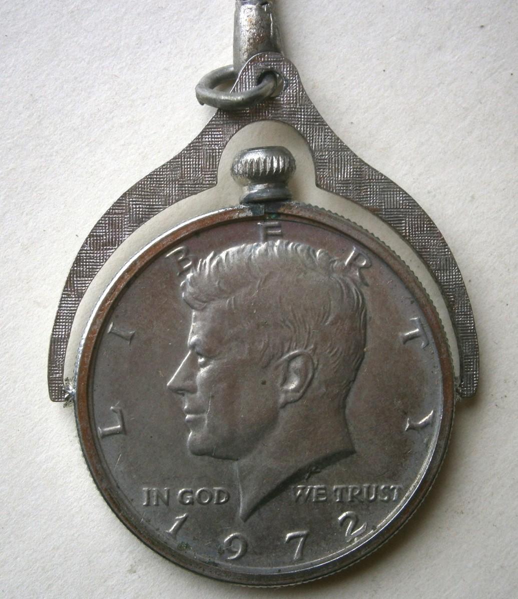 2 Vintage Keychains, a Kennedy Heads/tail Spinner, and a bullet keychain.
