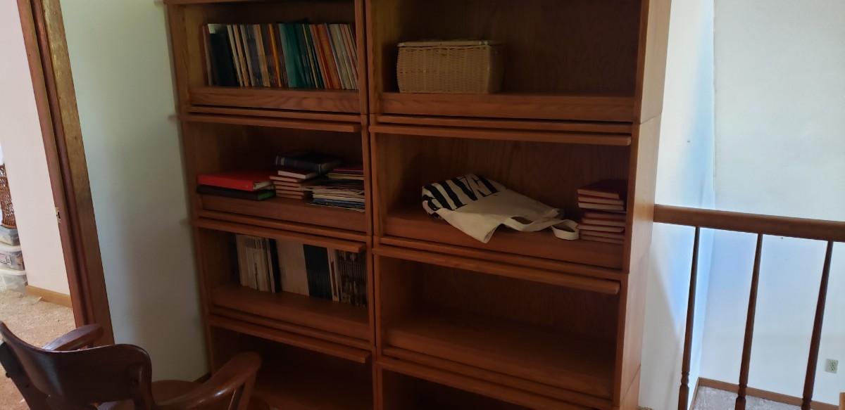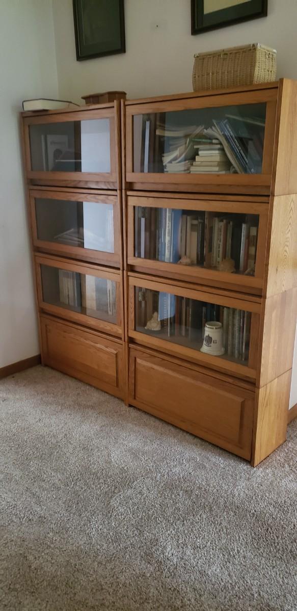 Each piece separates for easy moving & assembly. Beautiful wood and glass.