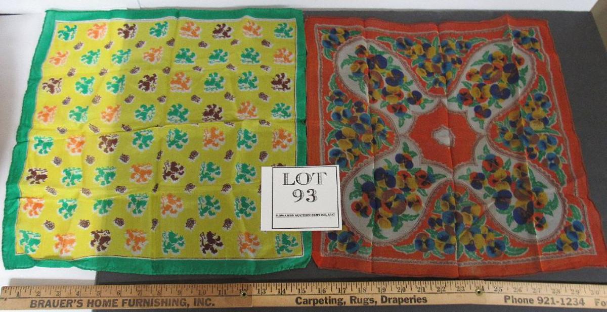 2 Vintage Large Ladies Hankies, Very Thin Material