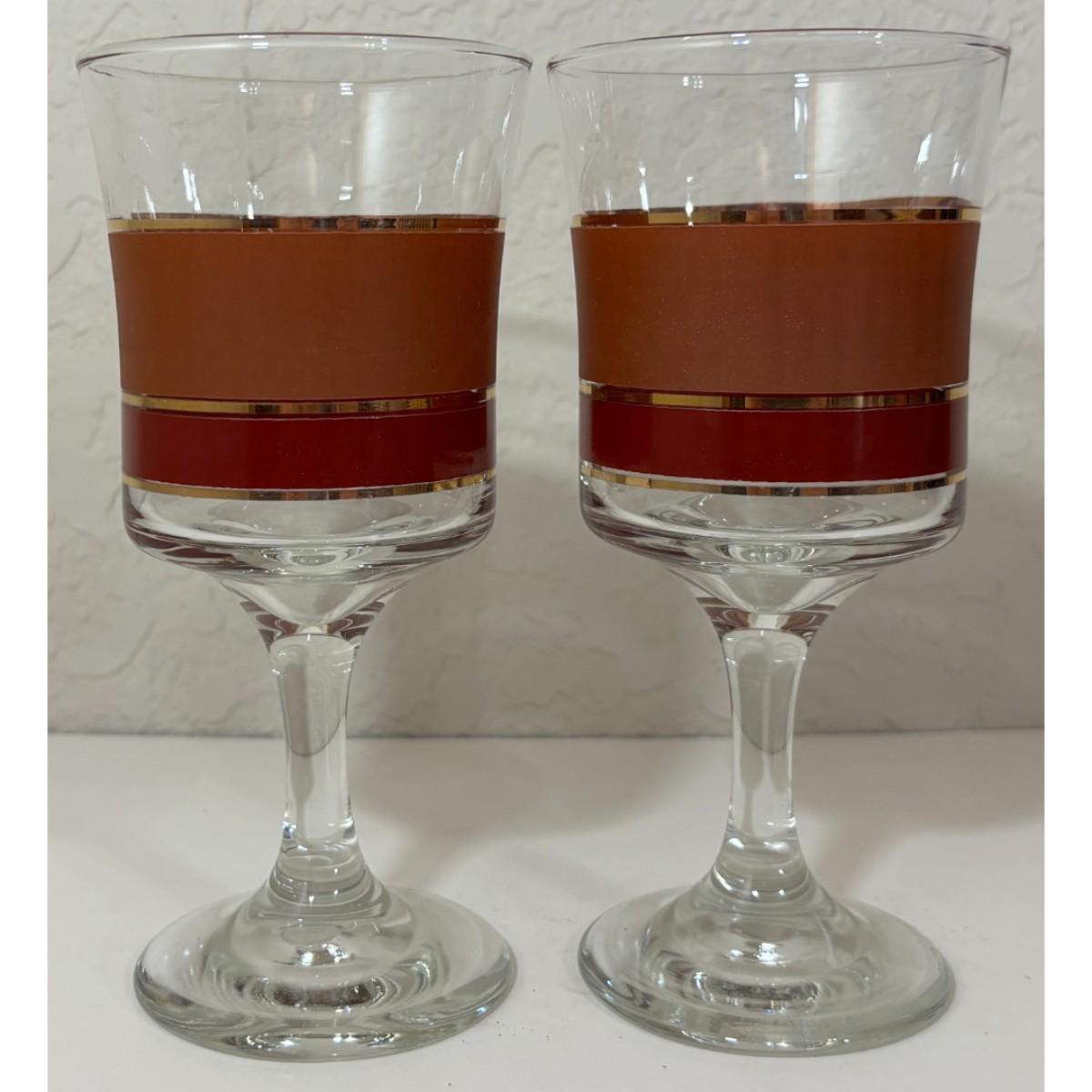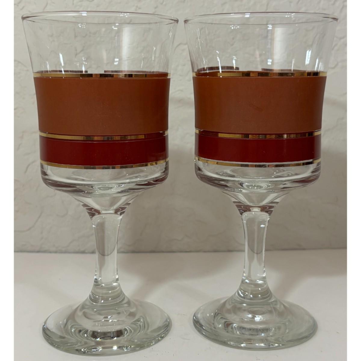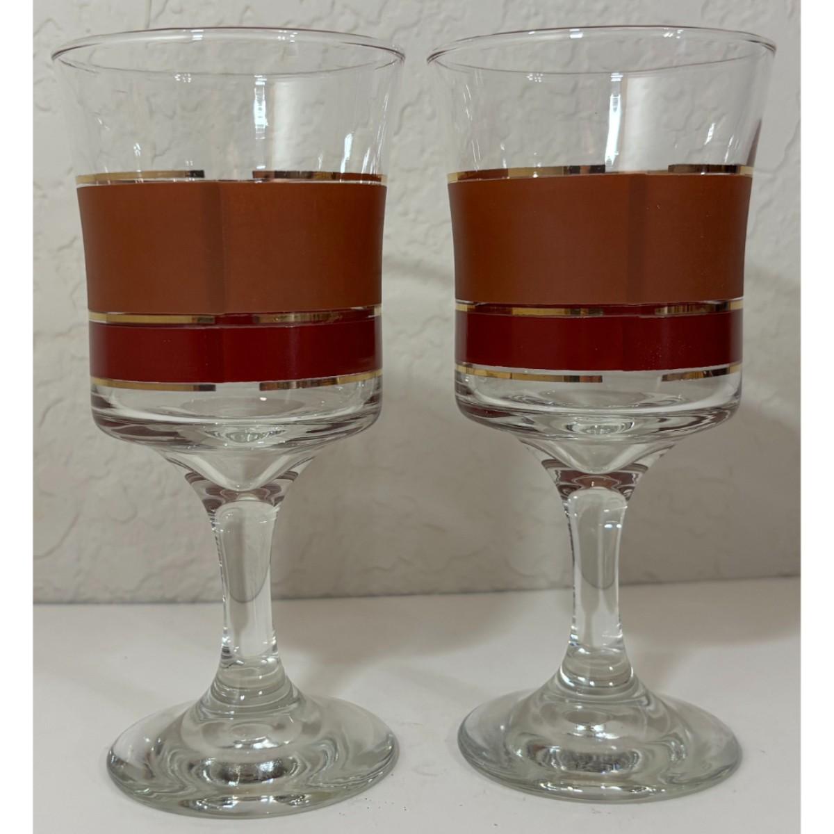 2 Vintage Libbey Brandywine Goblets / Glasses Red Gold Trim Footed Pedestal MCM