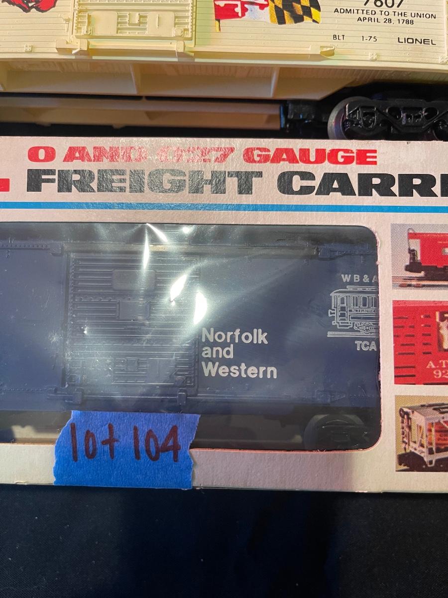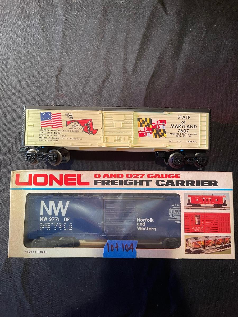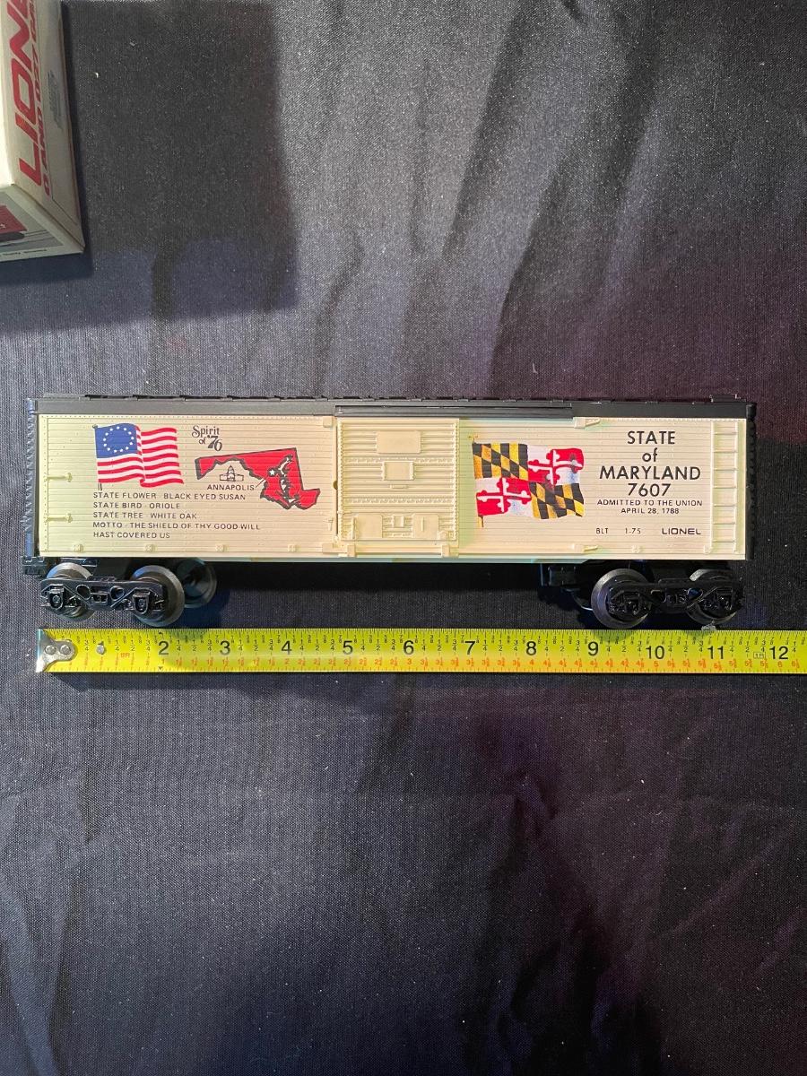 "O and 027 gauge freight carrier", State of Md 7607 train.