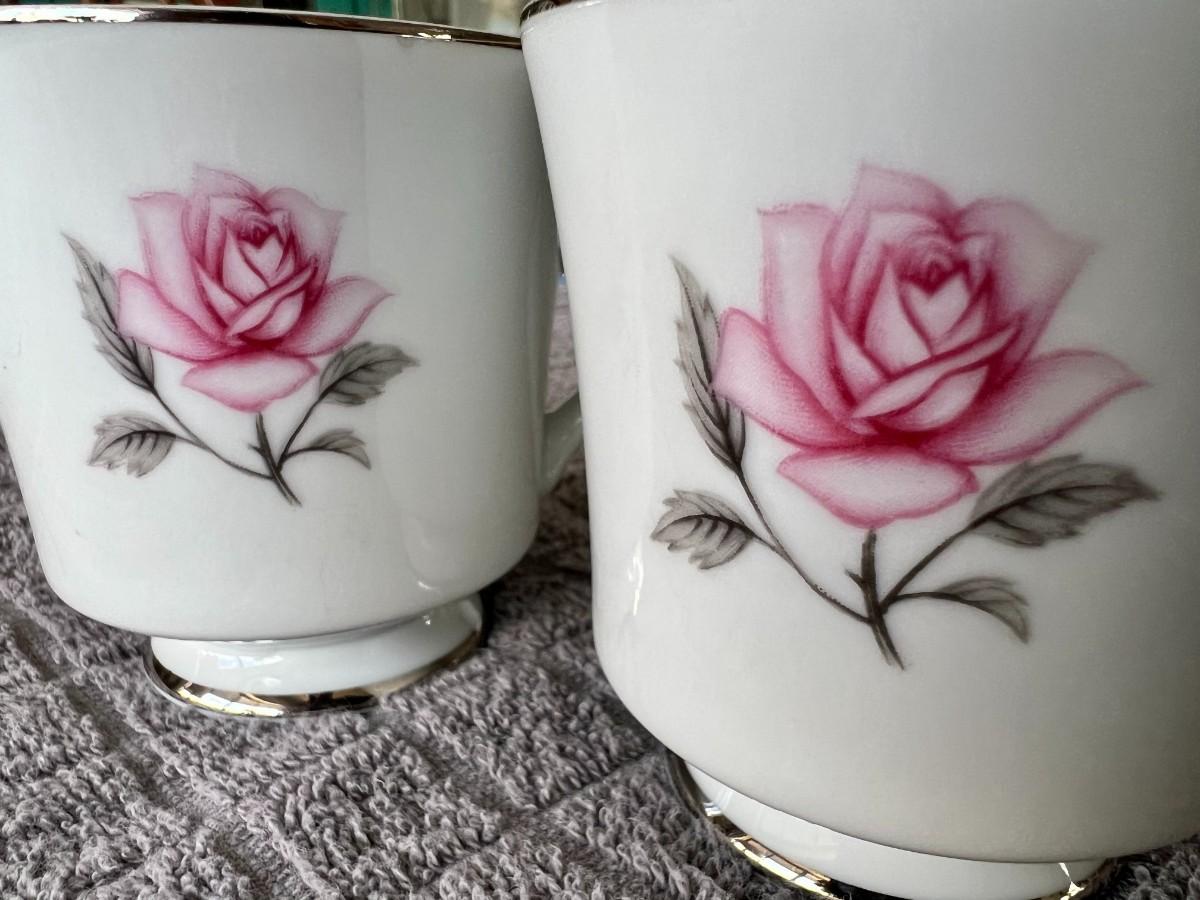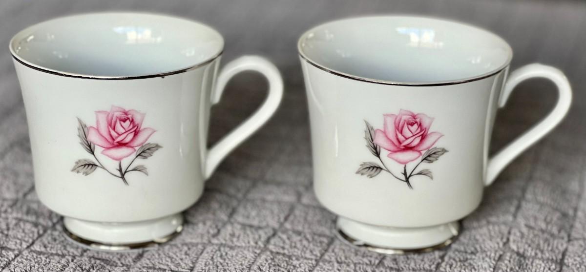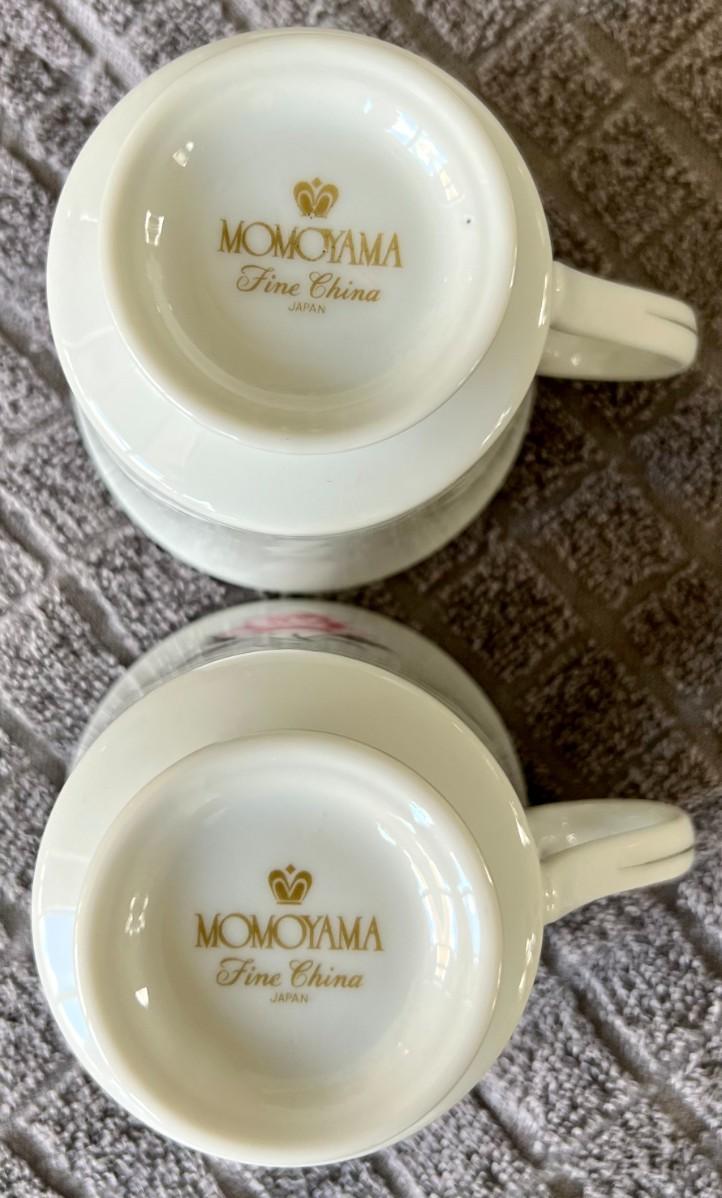 2 Vintage Matching Fine China Rose Tea Cups by Momoyama Made in Japan.
