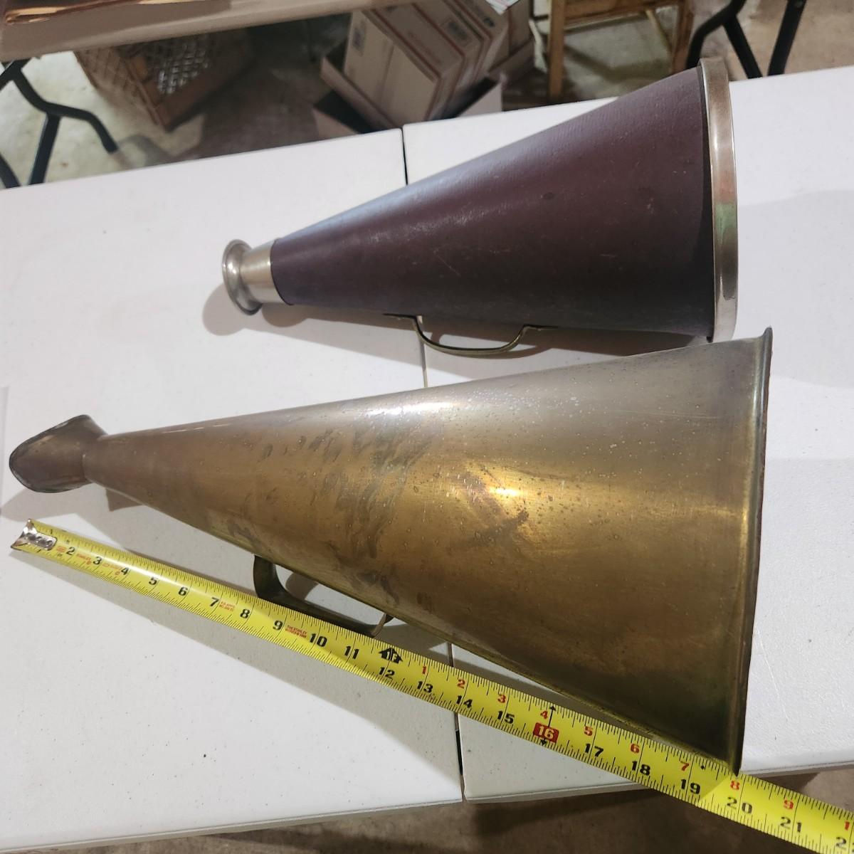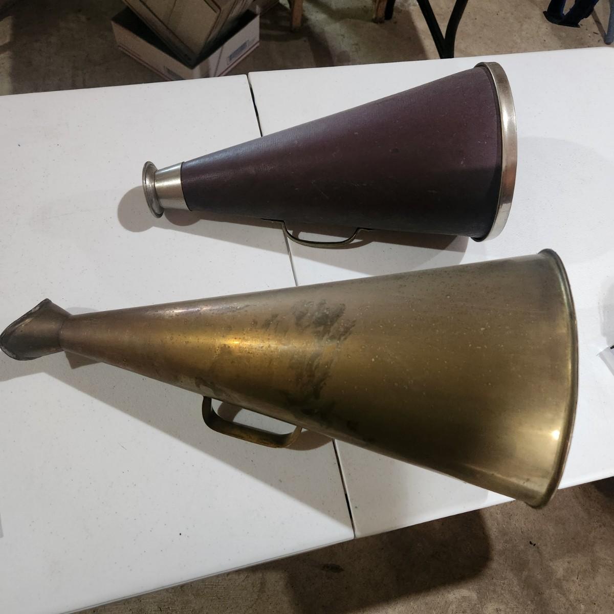 2 Vintage Megaphones Bull Horns 1 Merriman Bros,Boston 1 Brass Tested Working