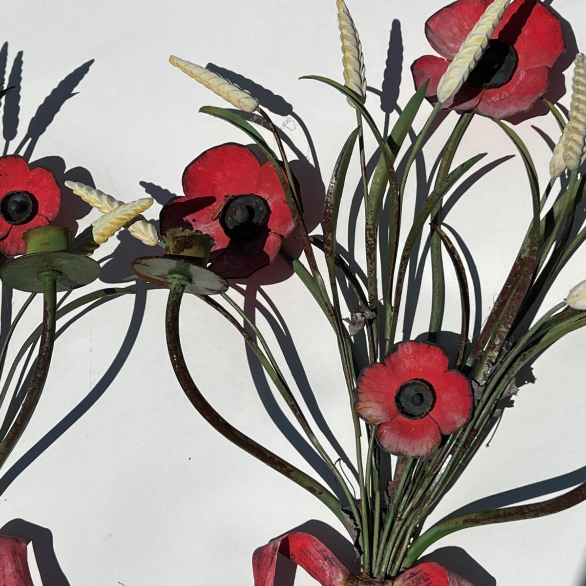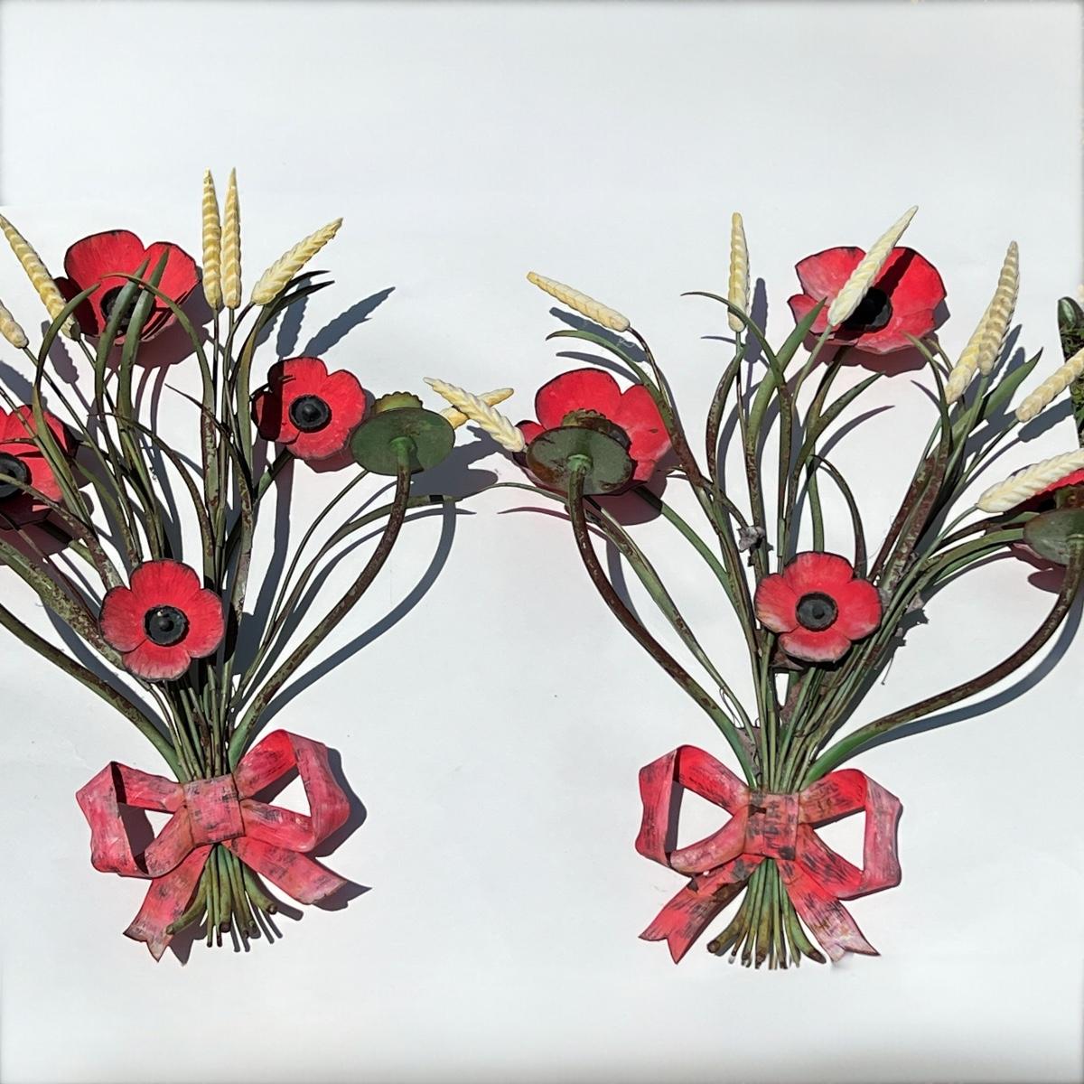 2 Vintage Metal Wall Art Candle Holders
