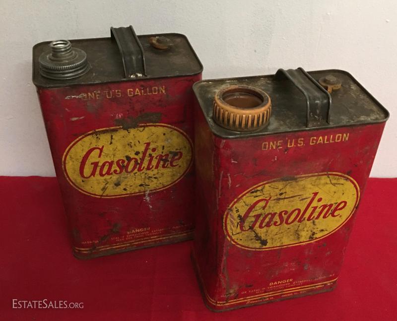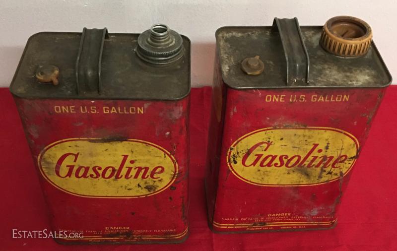 2 Vintage Metal Tin One Gallon Gasoline Cans
