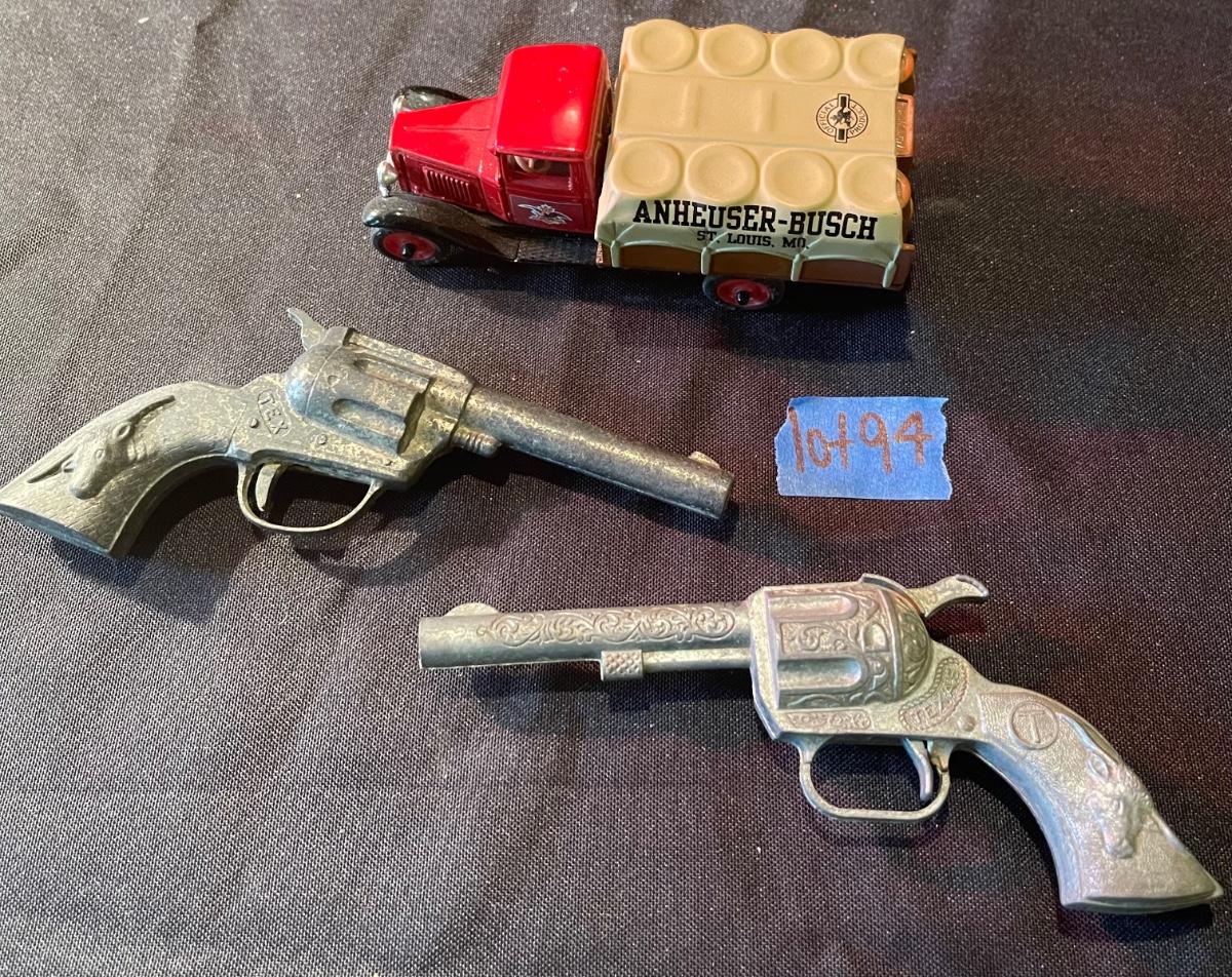 (2) vintage metal toy guns, Anheuser-Busch truck