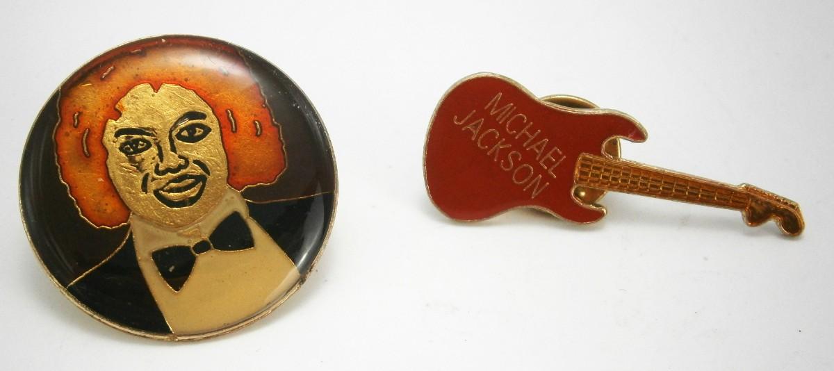 (2) Vintage Michael Jackson Collar Pins, 1 1/8 & 1 1/2 in.
