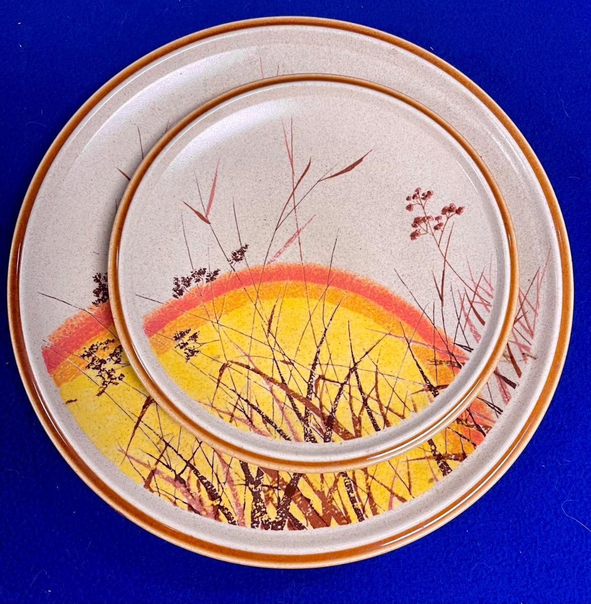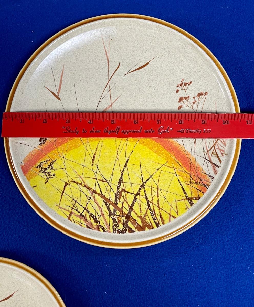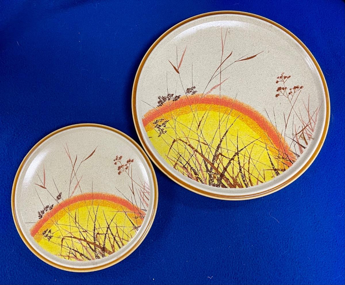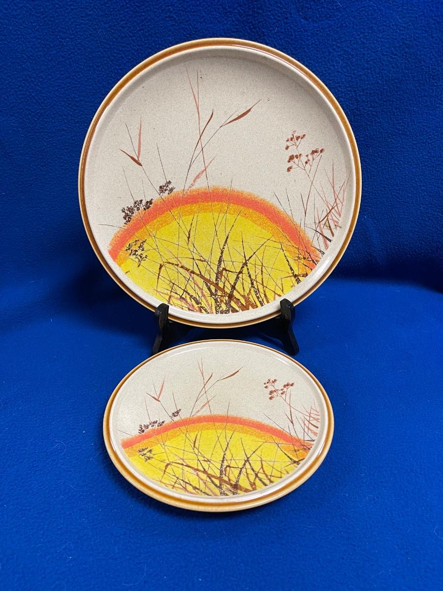 2 Vintage Mikasa Stylekraft High Noon Pattern Stoneware Plates Sunrays Harvest
