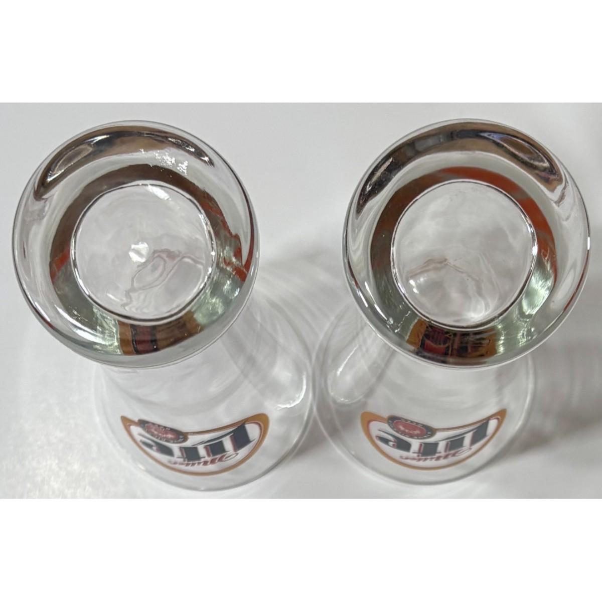 You get two glasses that are in good condition with minor surface wear. Each mug stands approximately 8 3/8" tall, has a roughly 3.25" diameter at the rim, and a 2.5" diameter at the base. Please see all pictures. Thank you for looking. As a reminder, if this is a lot, we do not break up lots. Also, all items are prepacked, so each item is sent individually. Any item that qualifies for media mail and weighs over one pound will be shipped via media mail. Otherwise, the item will be shipped USPS ground advantage, or UPS ground. Shipping for this item is $11.00. Items ship within two days after payment is received. Item SKU is MUG323.